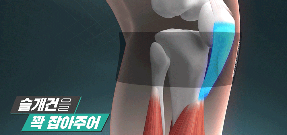 테이핑한거 같이 슬개건과 옆근육까지 360도로 잡아주어