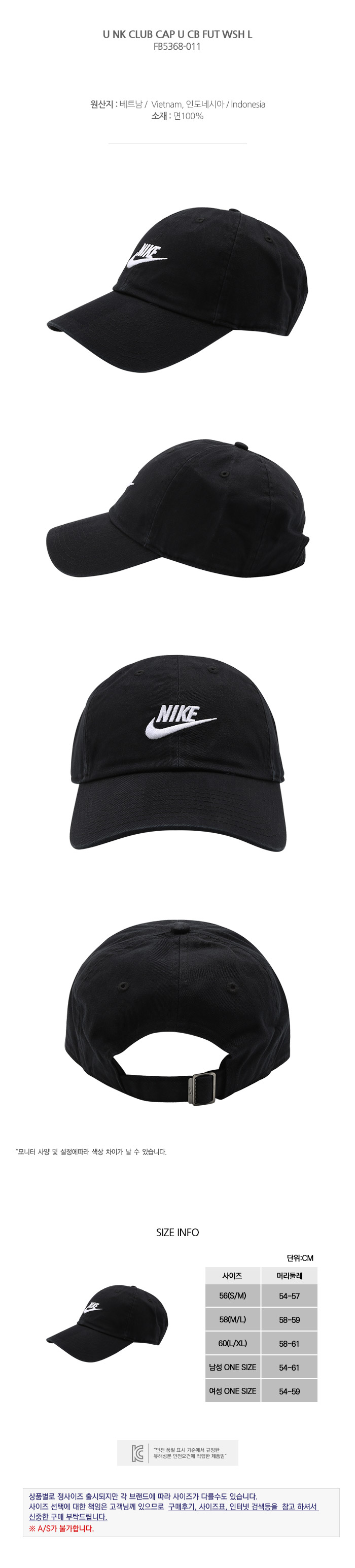 나이키 클럽 언스트럭쳐 퓨추라 워시드 캡모자 블랙 (FB5368-011)