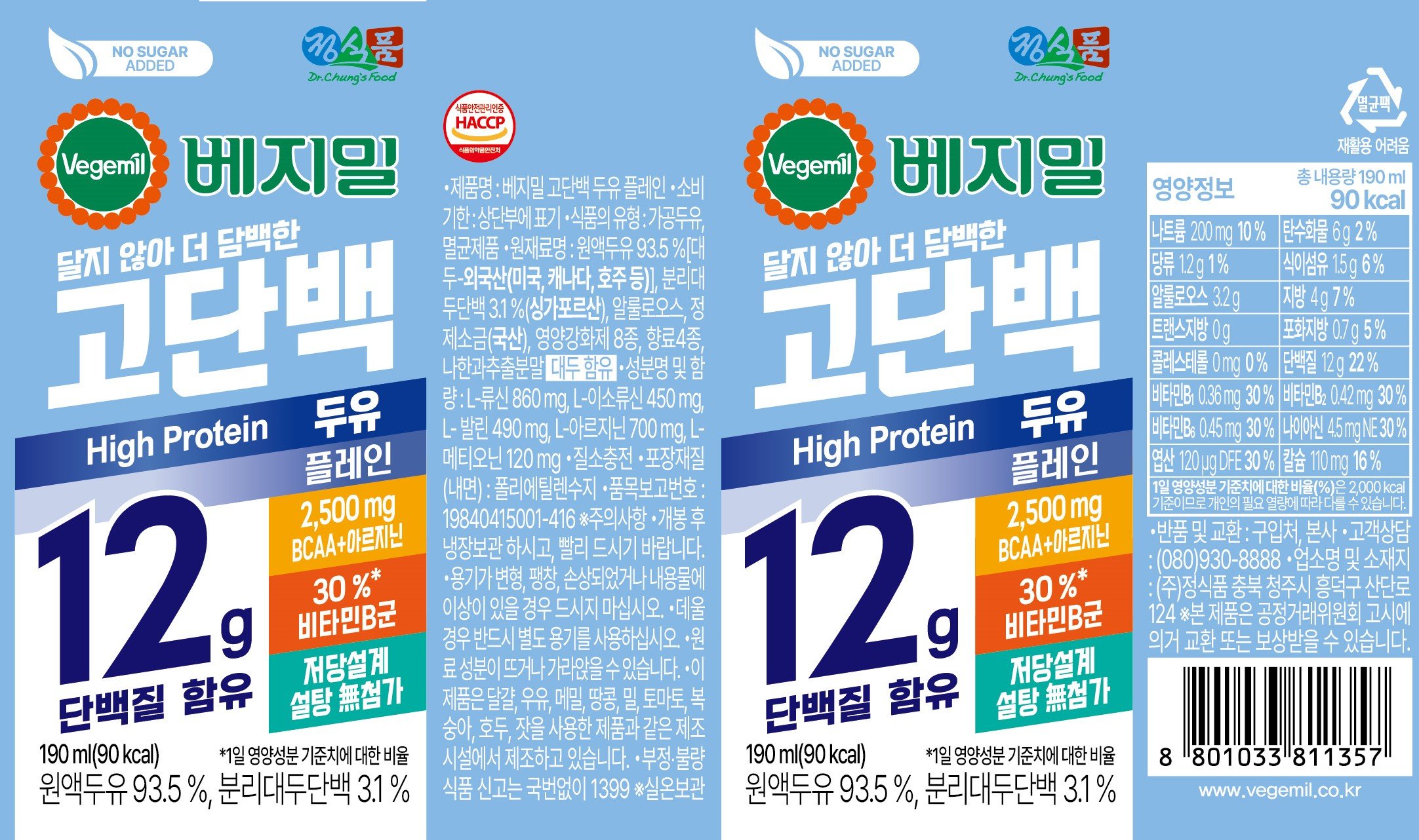 (V)(26/2/7까지)베지밀 고단백 두유 플레인 190ml16입3박스(총 48입)