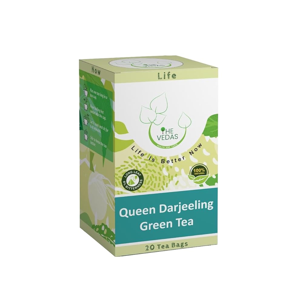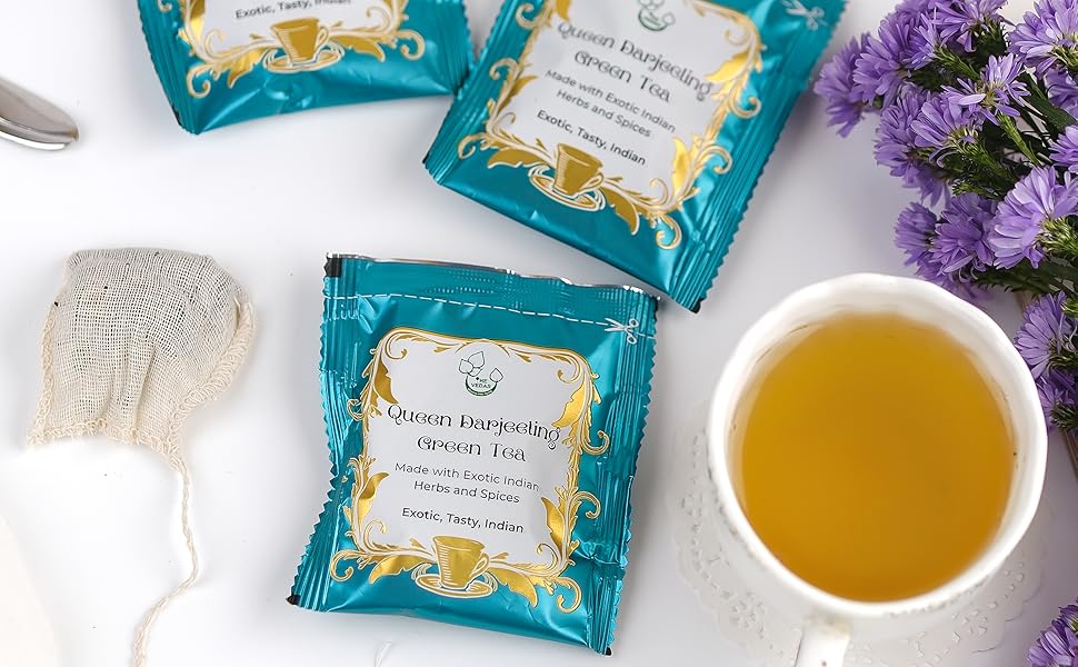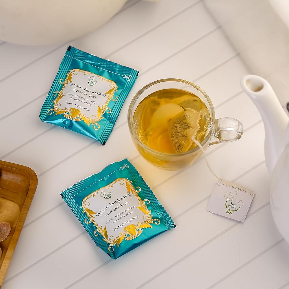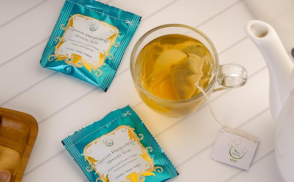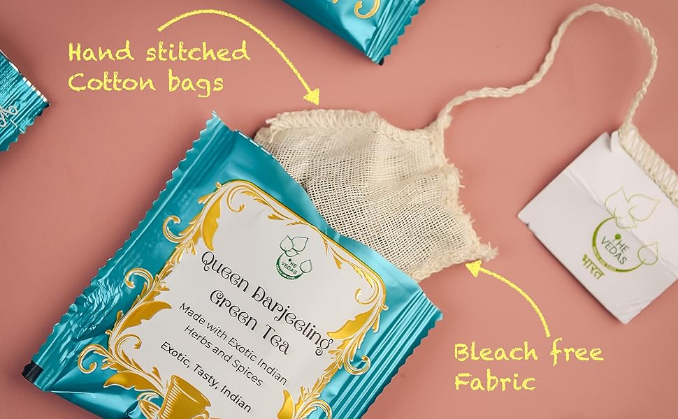 베다스 퀸 다르질링 녹차 플로럴 아로마 머스카텔 맛 라이트 골든 휴 | 핸드 스티치 코튼 티백 | 20팩