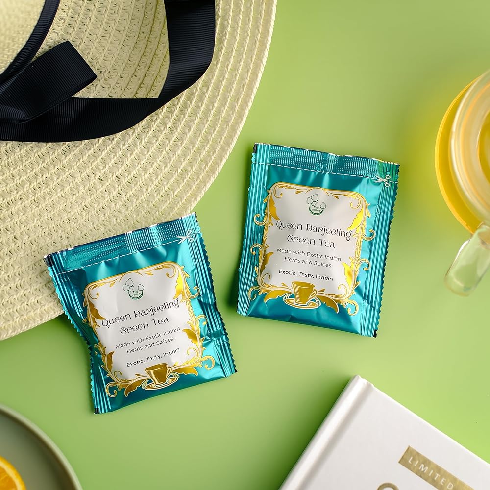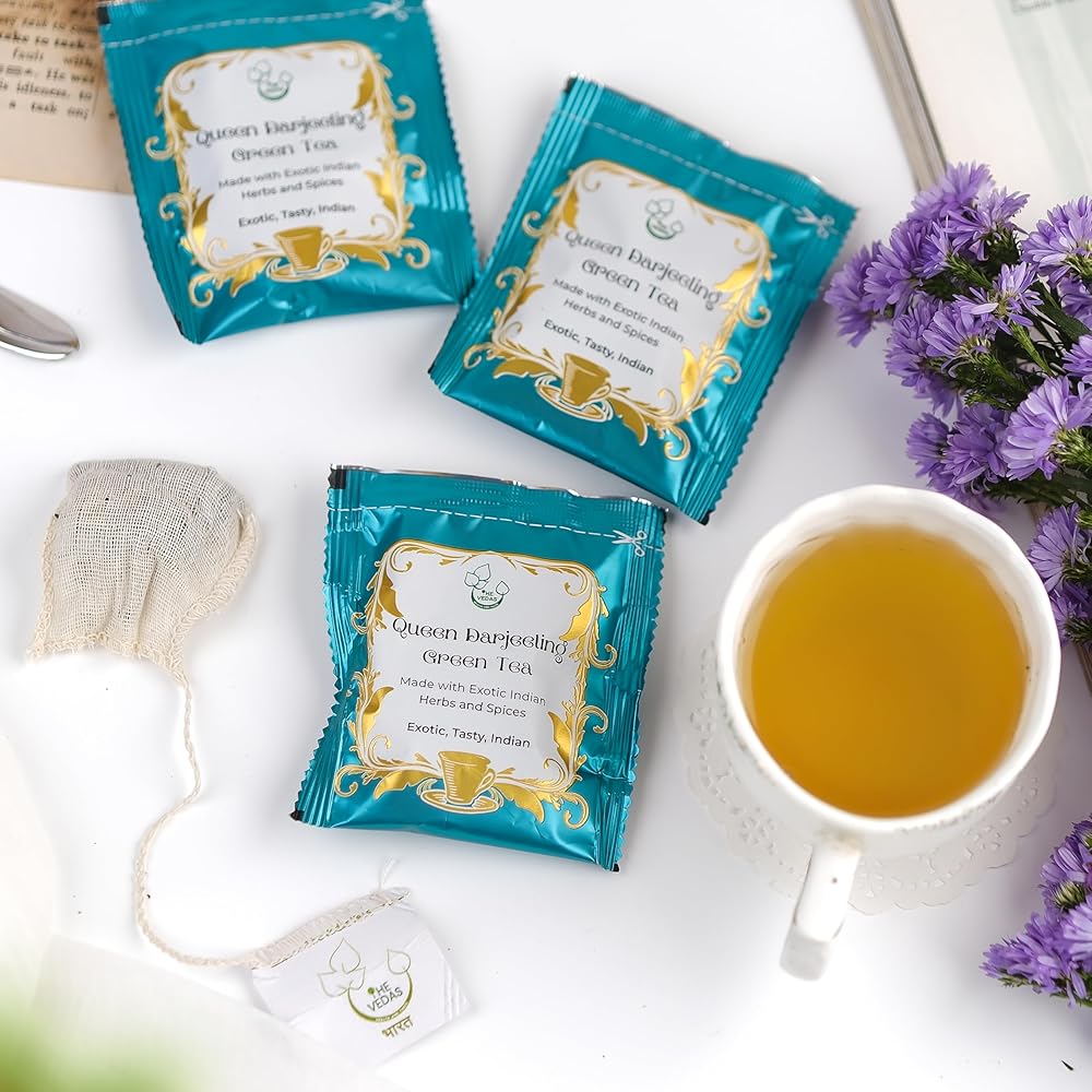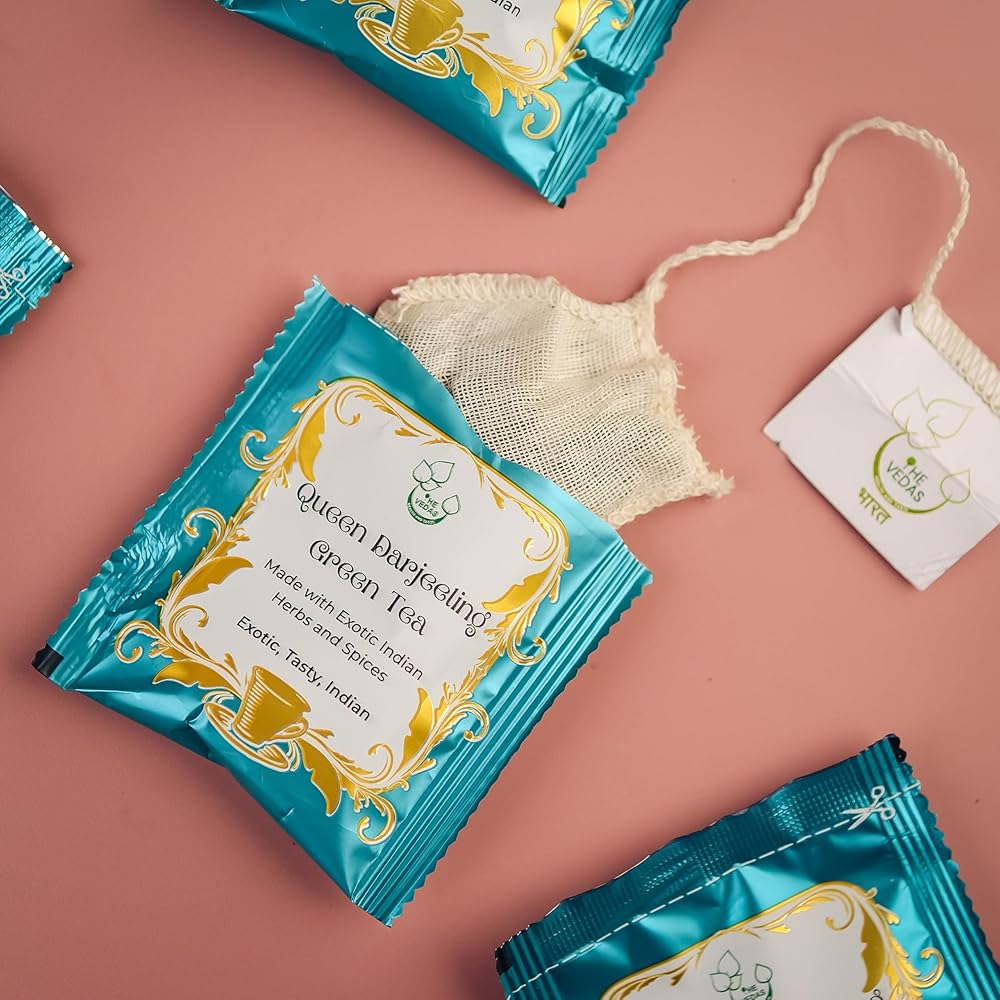 베다스 퀸 다르질링 녹차 플로럴 아로마 머스카텔 맛 라이트 골든 휴 | 핸드 스티치 코튼 티백 | 20팩