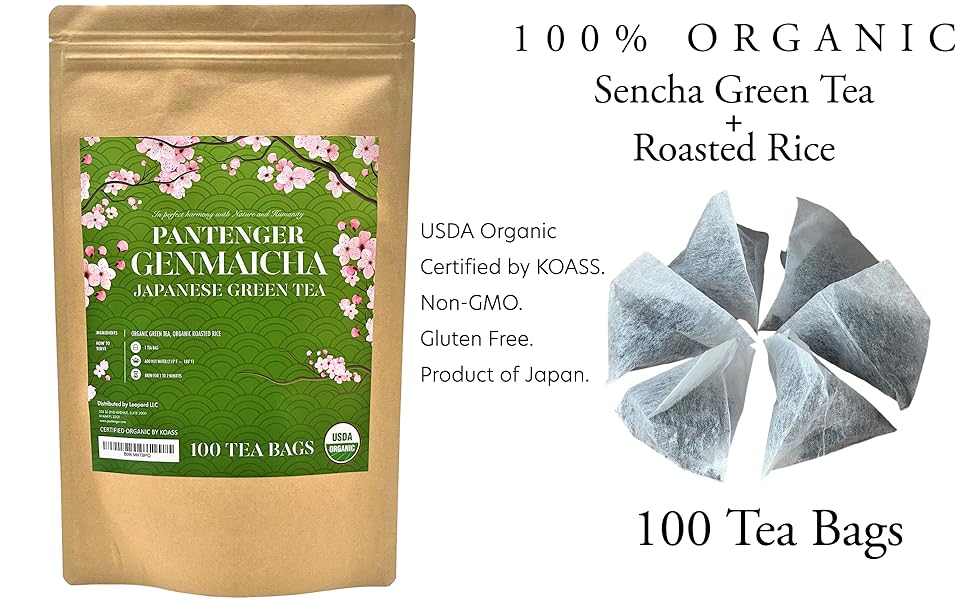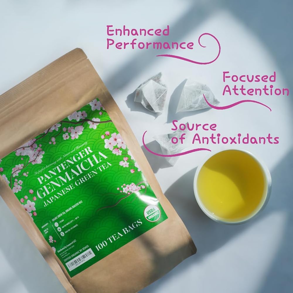 일본 겐마이차 | 티백 100개 | 일본 녹차 + 구운 현미 | 팬젠저 제공.