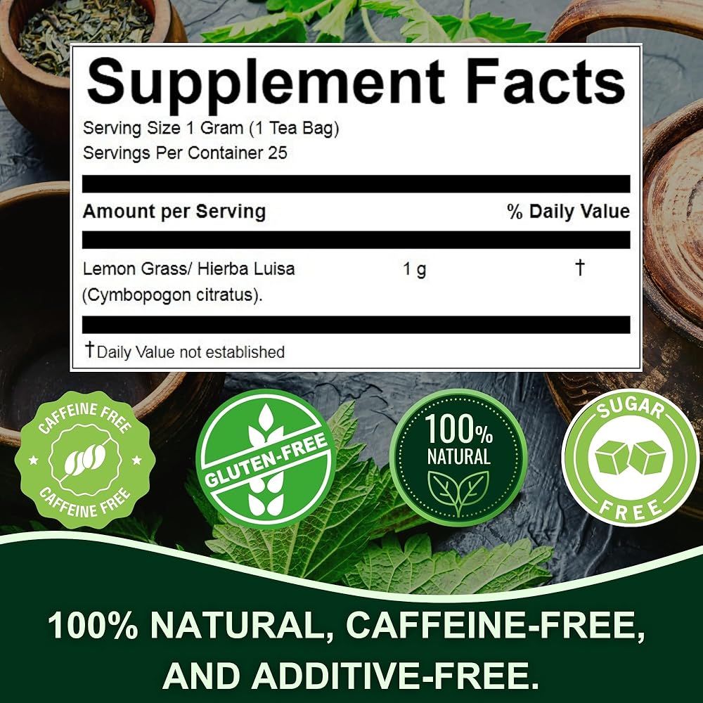 하난 레몬그라스 25 허브 티백 - 히에바 루이사 테 데 리몬 건조 레몬 그라스 잎 허브 페루산 히에발루이사