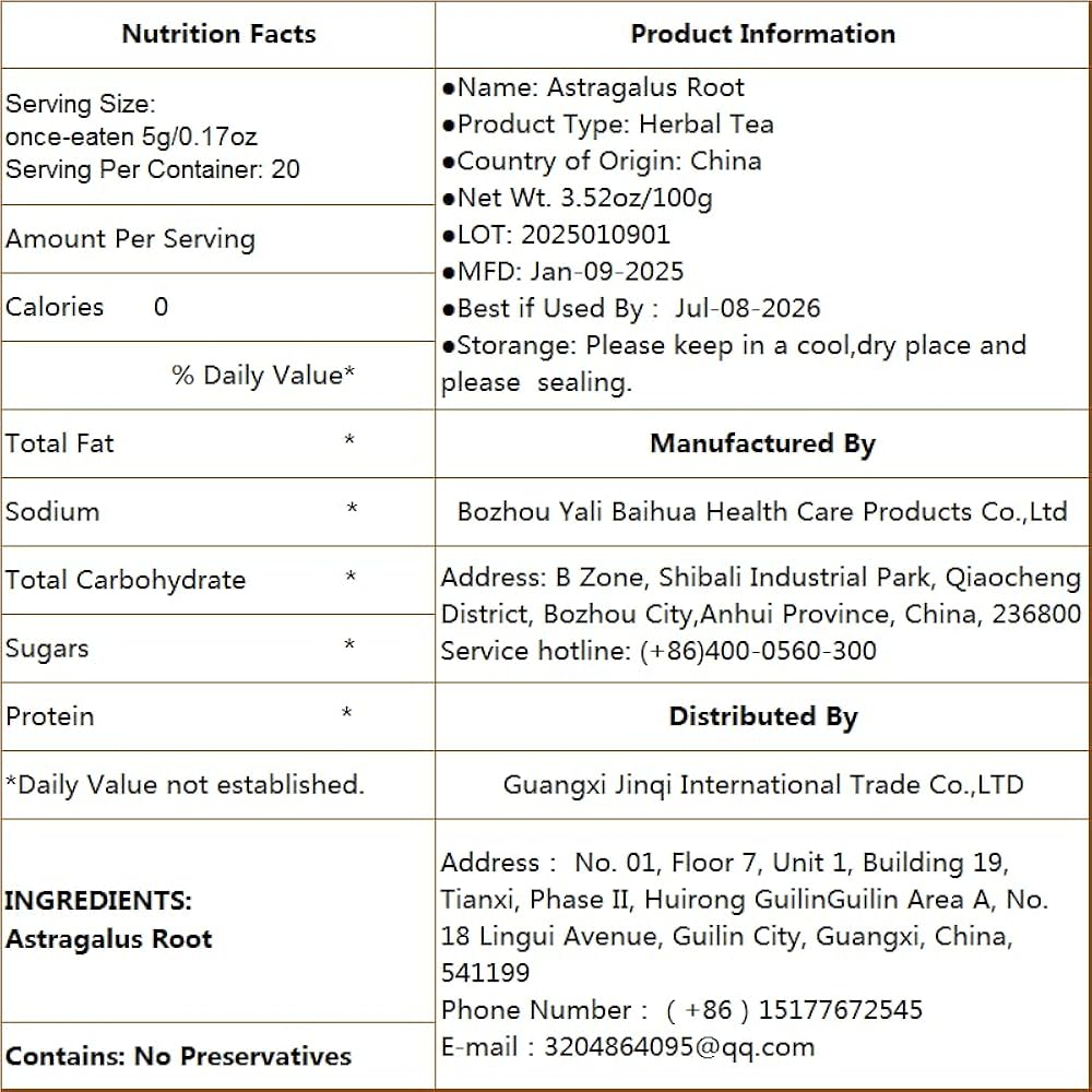 JINQI Valitud Astragalus Slices Tea Huang qi 7.05oz/200g (3.52oz/100g*2) Radix Astragalus Root Holid