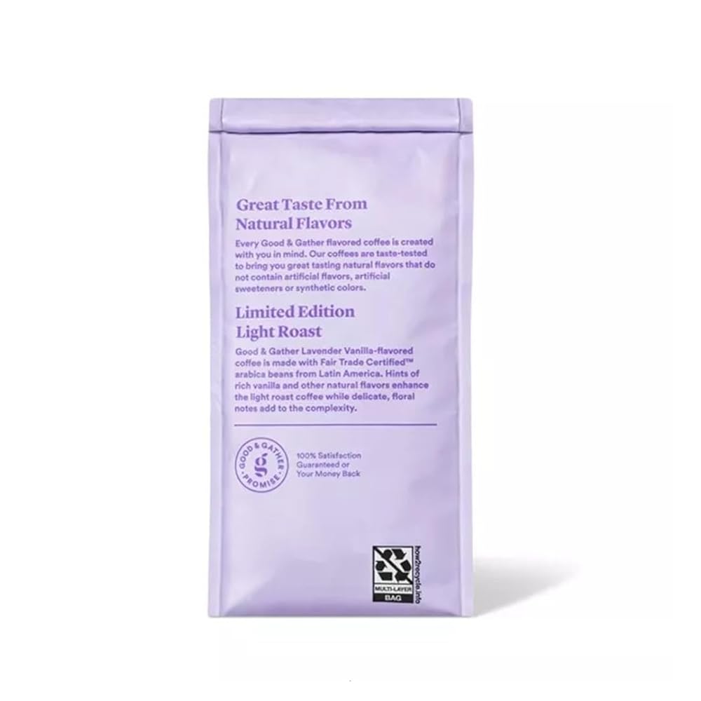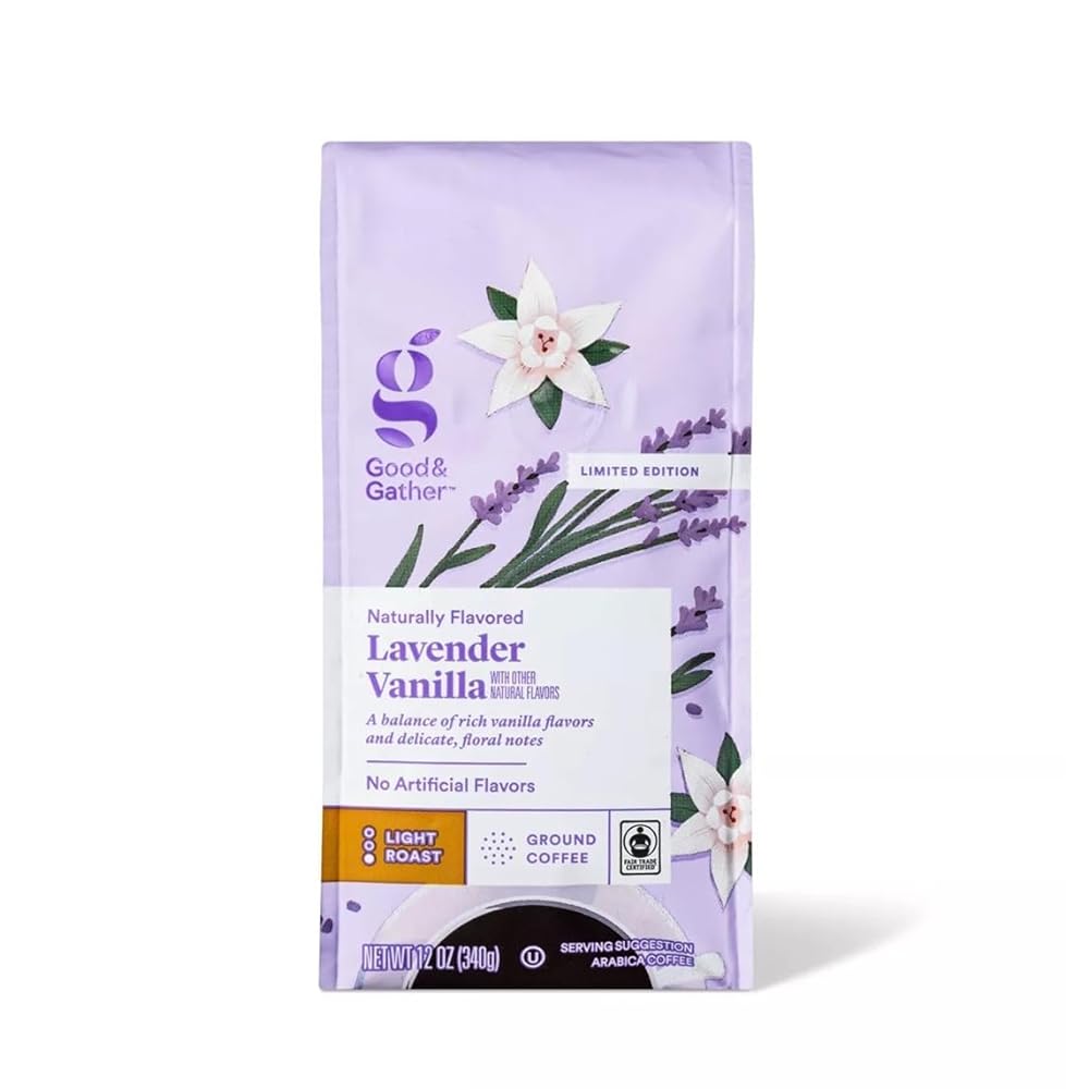 라벤더 바닐라 천연 맛 라이트 로스트 그라운드 커피 12온스/340g - (1팩)