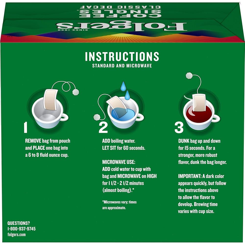 폴거스 커피 싱글 클래식 데카프 미디엄 로스트 커피 19개의 싱글 서브 커피