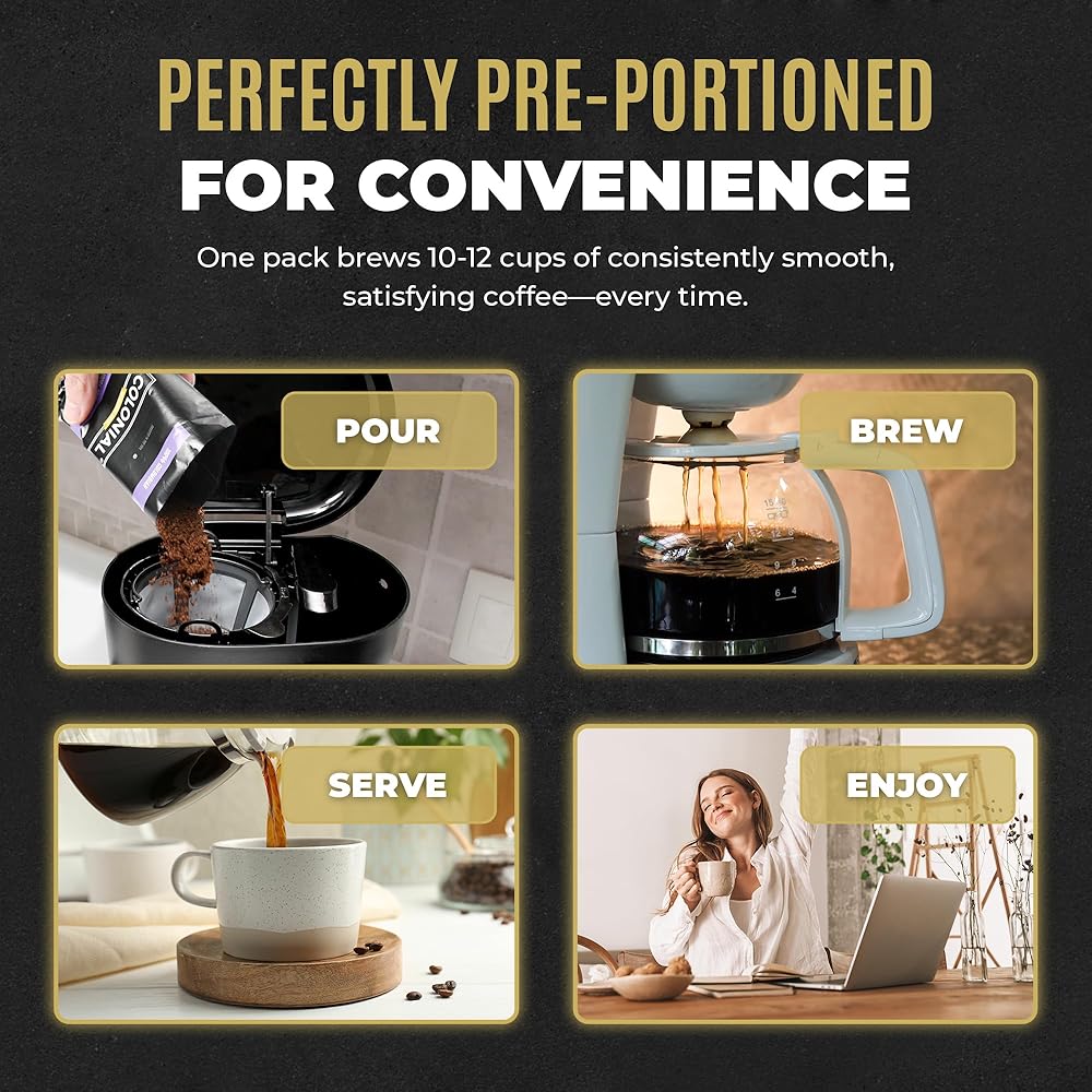 콜로니얼 커피 패킷 프리 그라운드 모듬 커피 팩 미디엄 다크 데카페인 로스트 포함 (2.5온스 봉지 32팩)