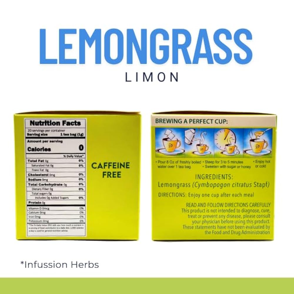 레몬그라스 리몬 허브 티 티백 20개 천연 시트러스 주입 카페인 프리 0.70온스