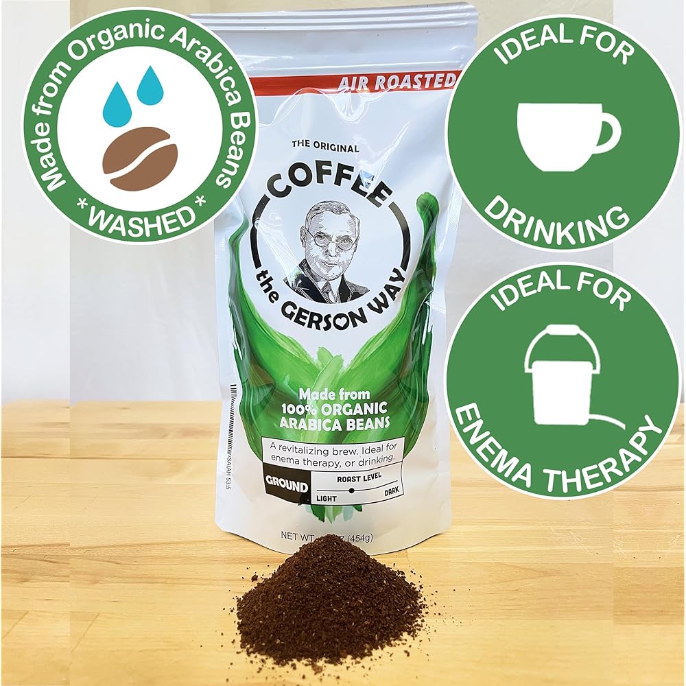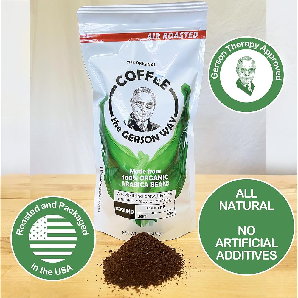 커피 더 거슨 웨이 공기로 구운 분쇄 아라비카 원두 리셀링 가능한 봉지 미디엄 로스트(8온스(.5파운드)
