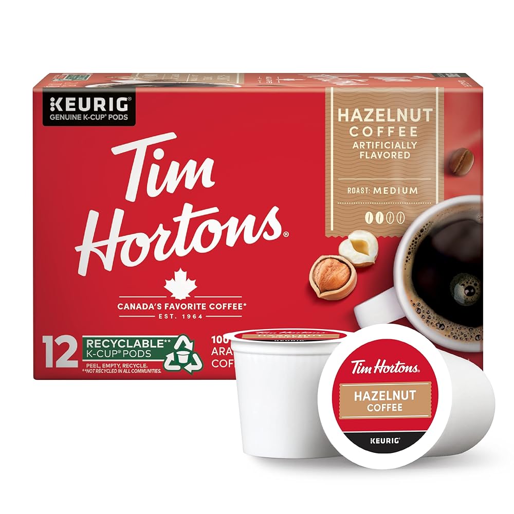 팀 호튼스 헤이즐넛 맛 미디엄 로스트 커피 큐리그 브루어스와 호환되는 싱글 서브 K컵 포드 12ct K컵 레드