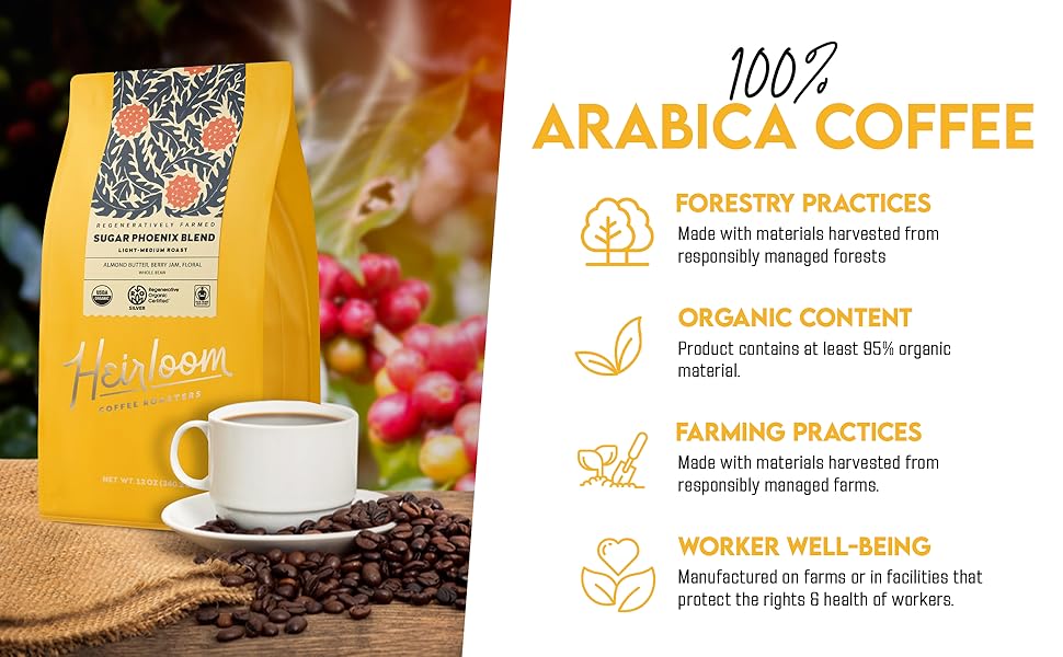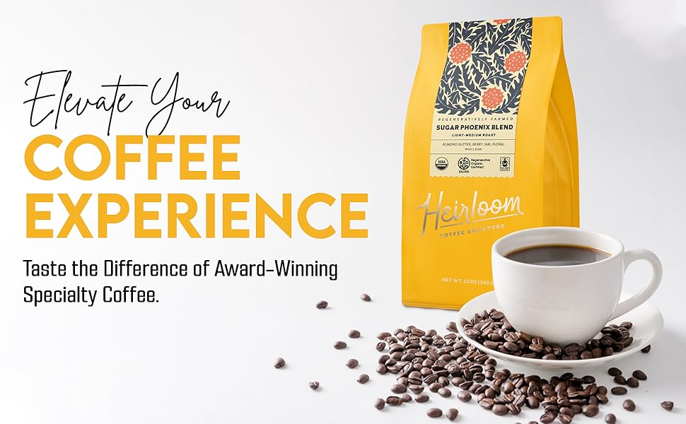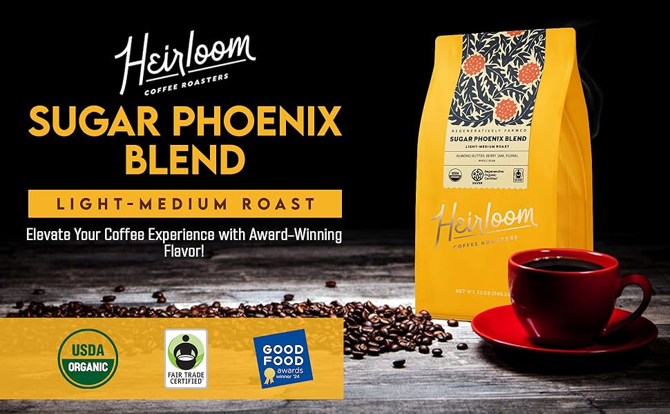 하이렐룸 커피 로스터 - 슈가 피닉스 블렌드 - 미디엄 로스트 - 홀빈 커피 - 100% 재생 인증 12온스
