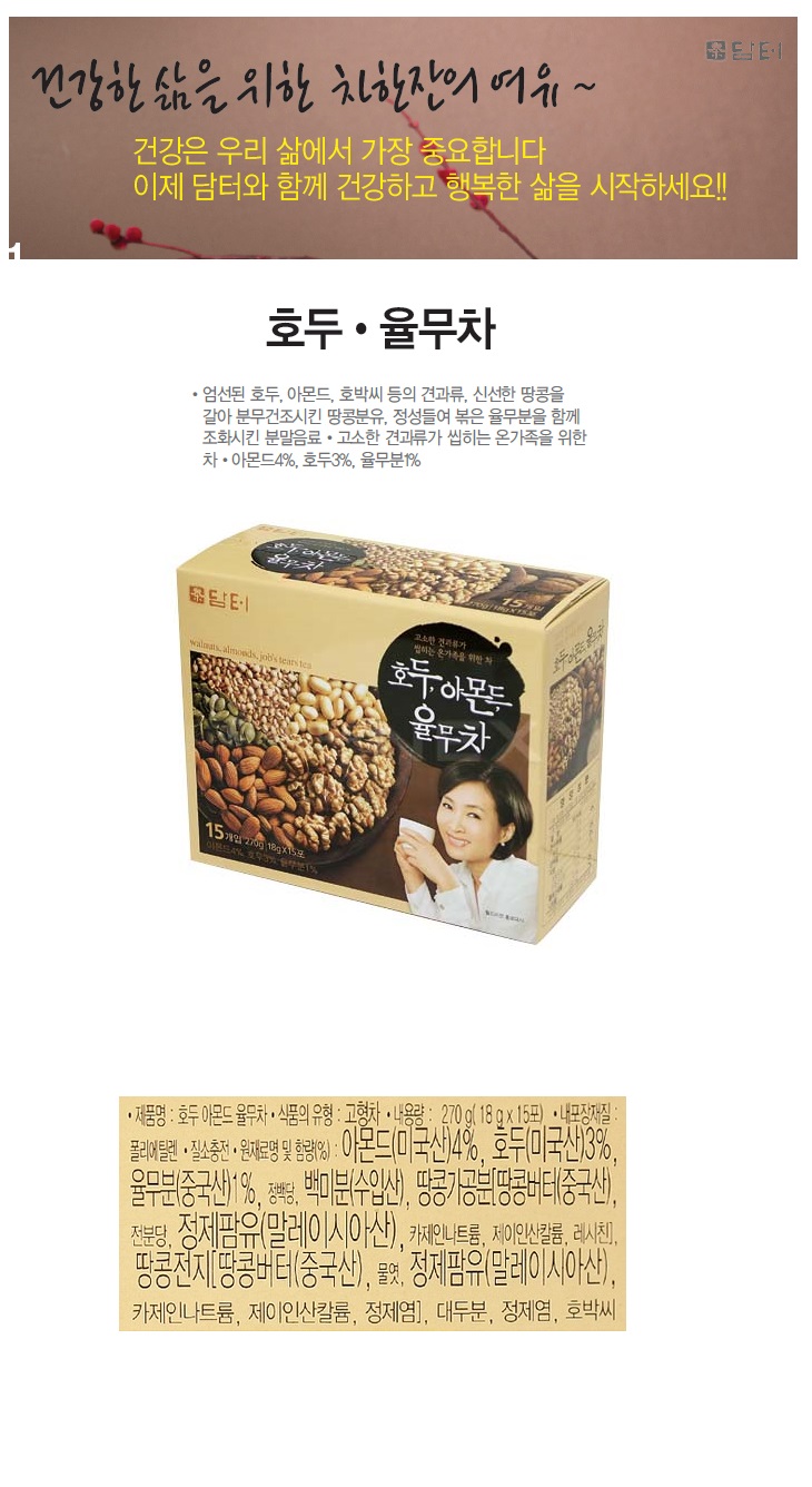 담터 호두 아몬드 율무차 18g X 15T 탕비 간식 티타임 음료 홍차