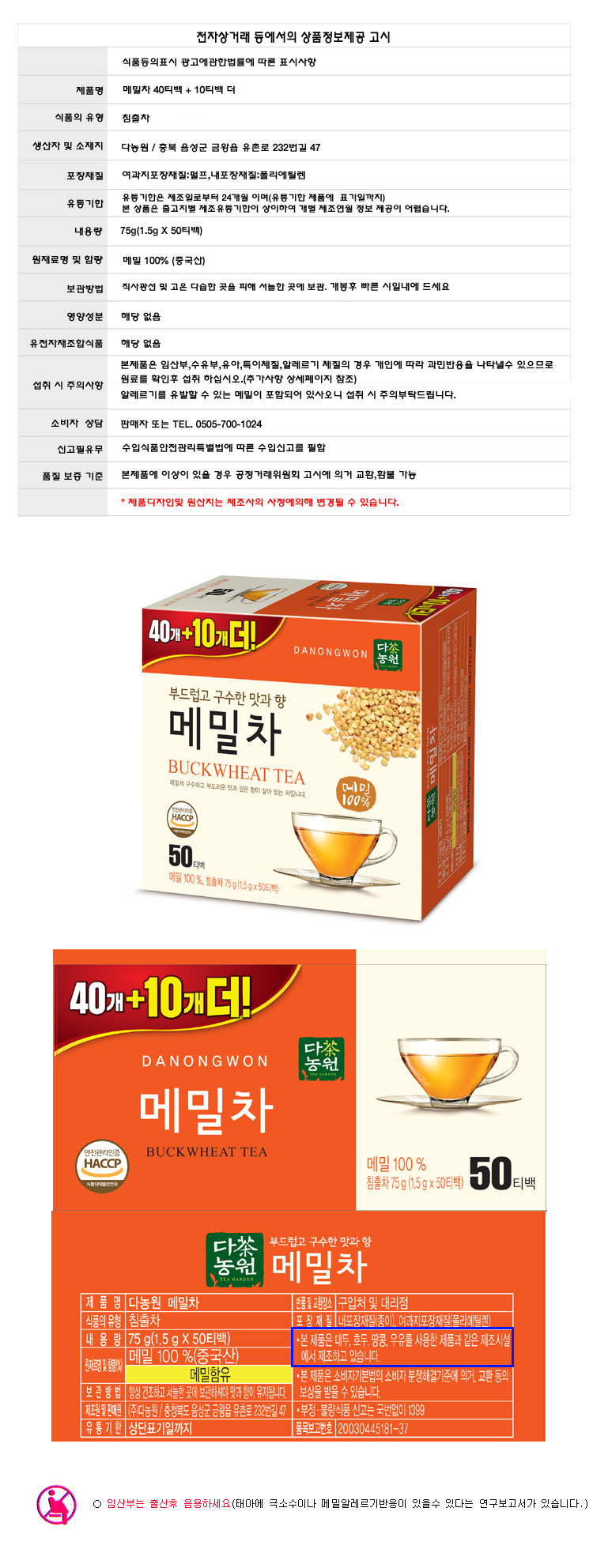 다농원 메밀차 50티백
