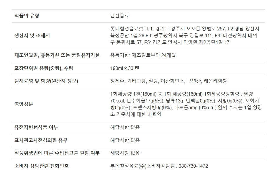 상품명 : 칠성사이다 190mlx30개 롯데칠성