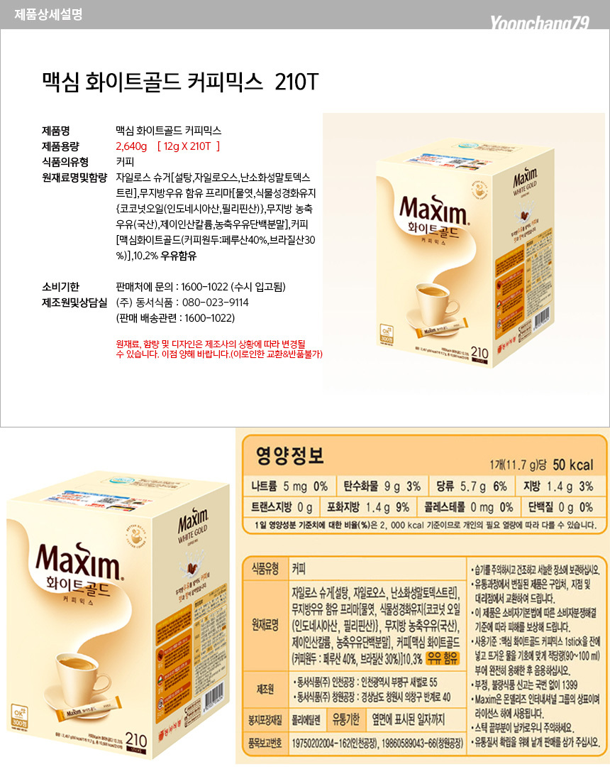 동서식품 맥심 화이트골드 커피믹스 210T