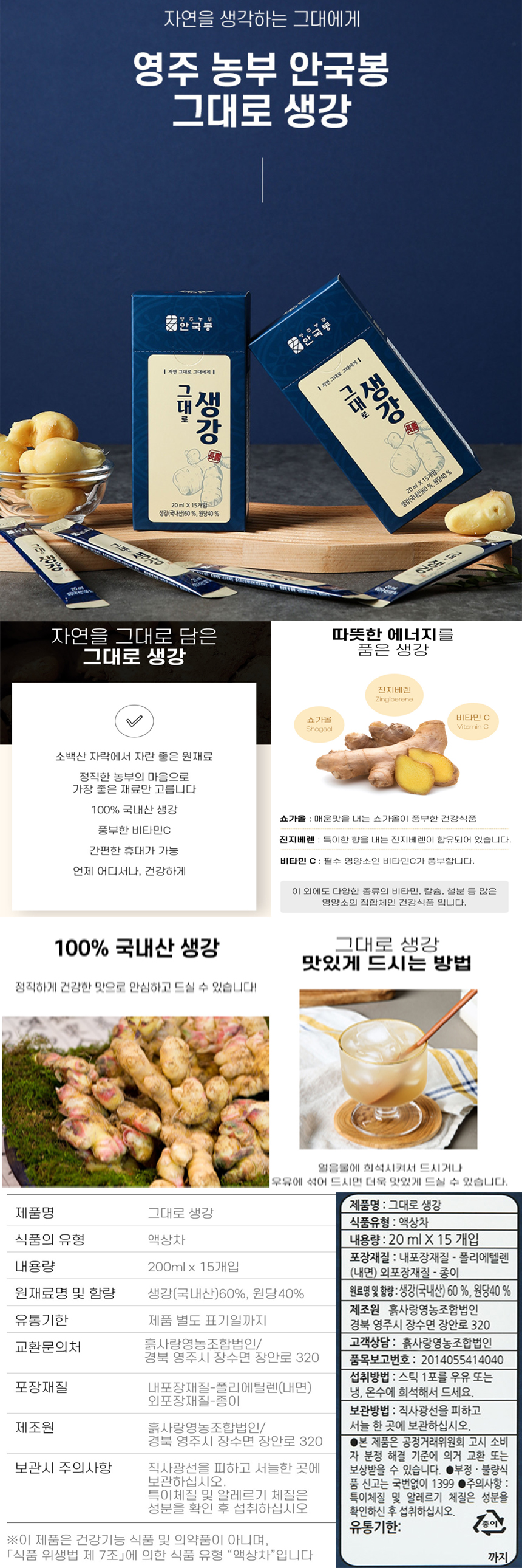 자연 그대로 생강 액상차(20mlX15개X2박스 국내산)