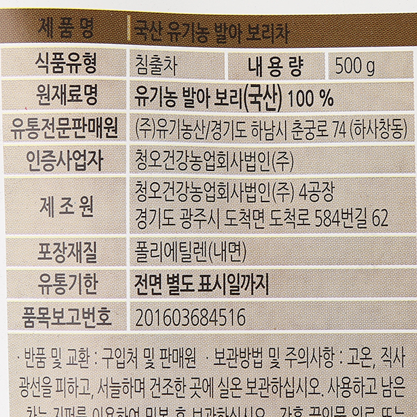 (롯데백화점)국산 유기농 발아 보리차 500g