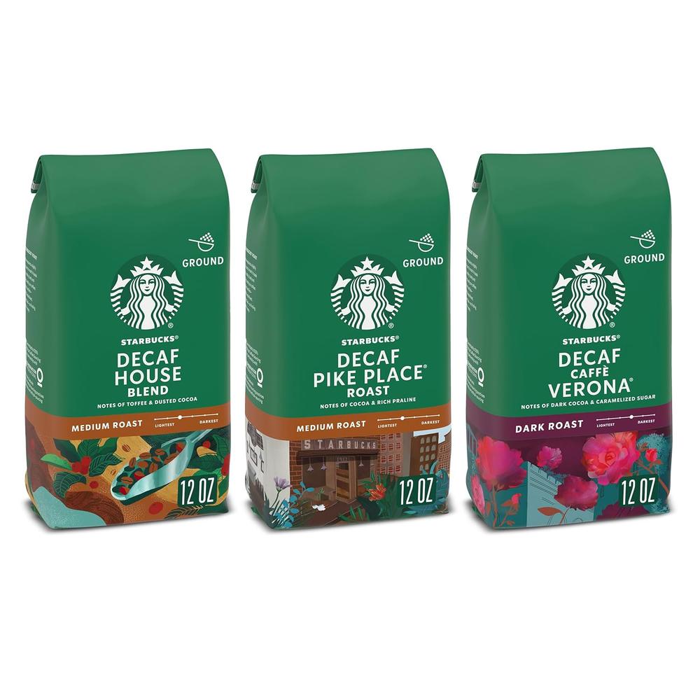 스타벅스 디카페인 디카프 그라운드 분쇄 원두 커피 가루 파이크플레이스 베로나 하우스 블렌드 340g 3개 (미국배송) Starbucks Decaf Ground Coffee