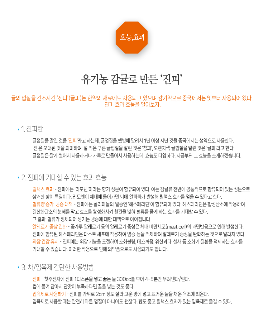 제주 유기농 진피 귤피 500G 귤껍질차 귤차 국산 귤피차