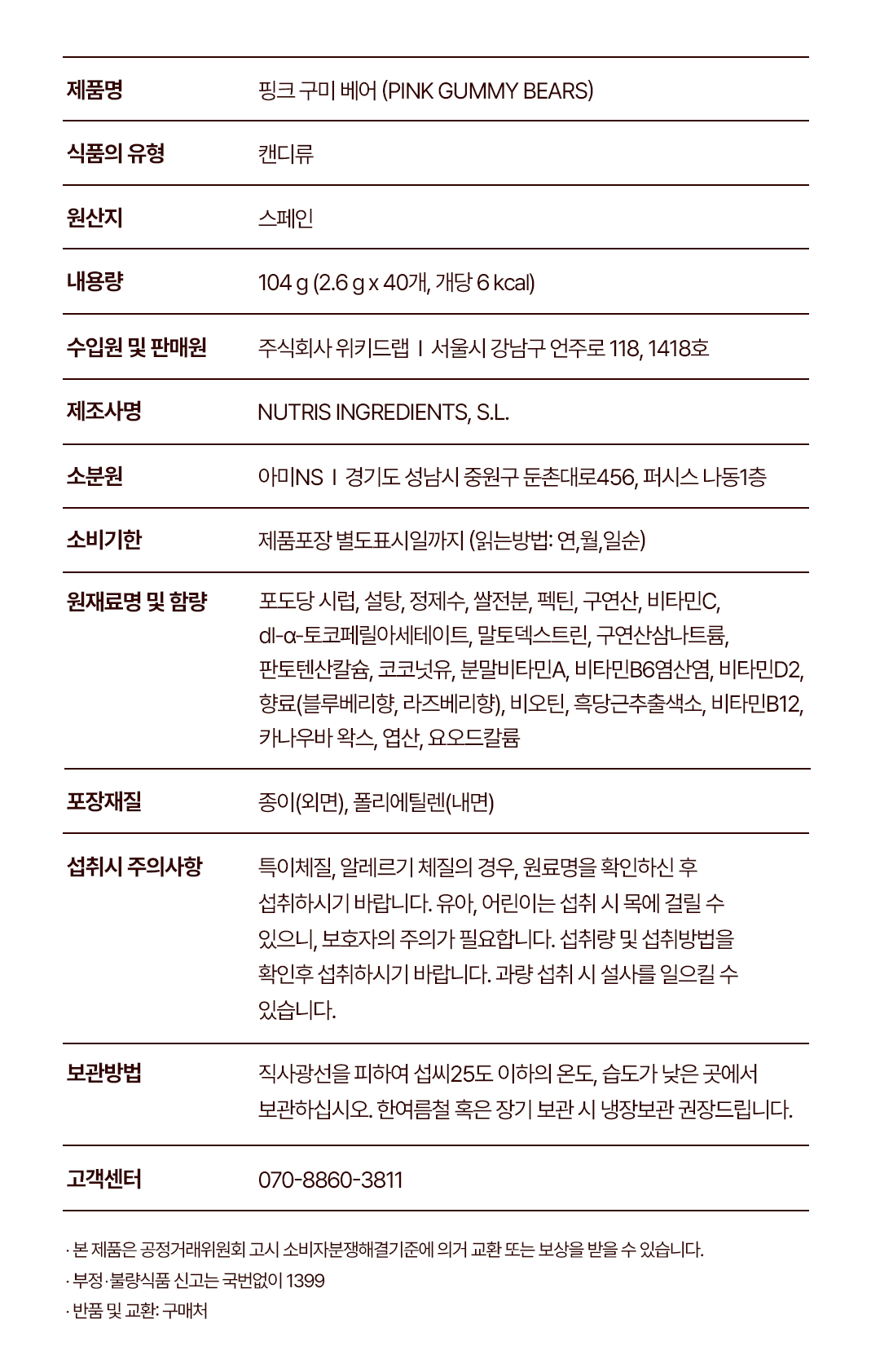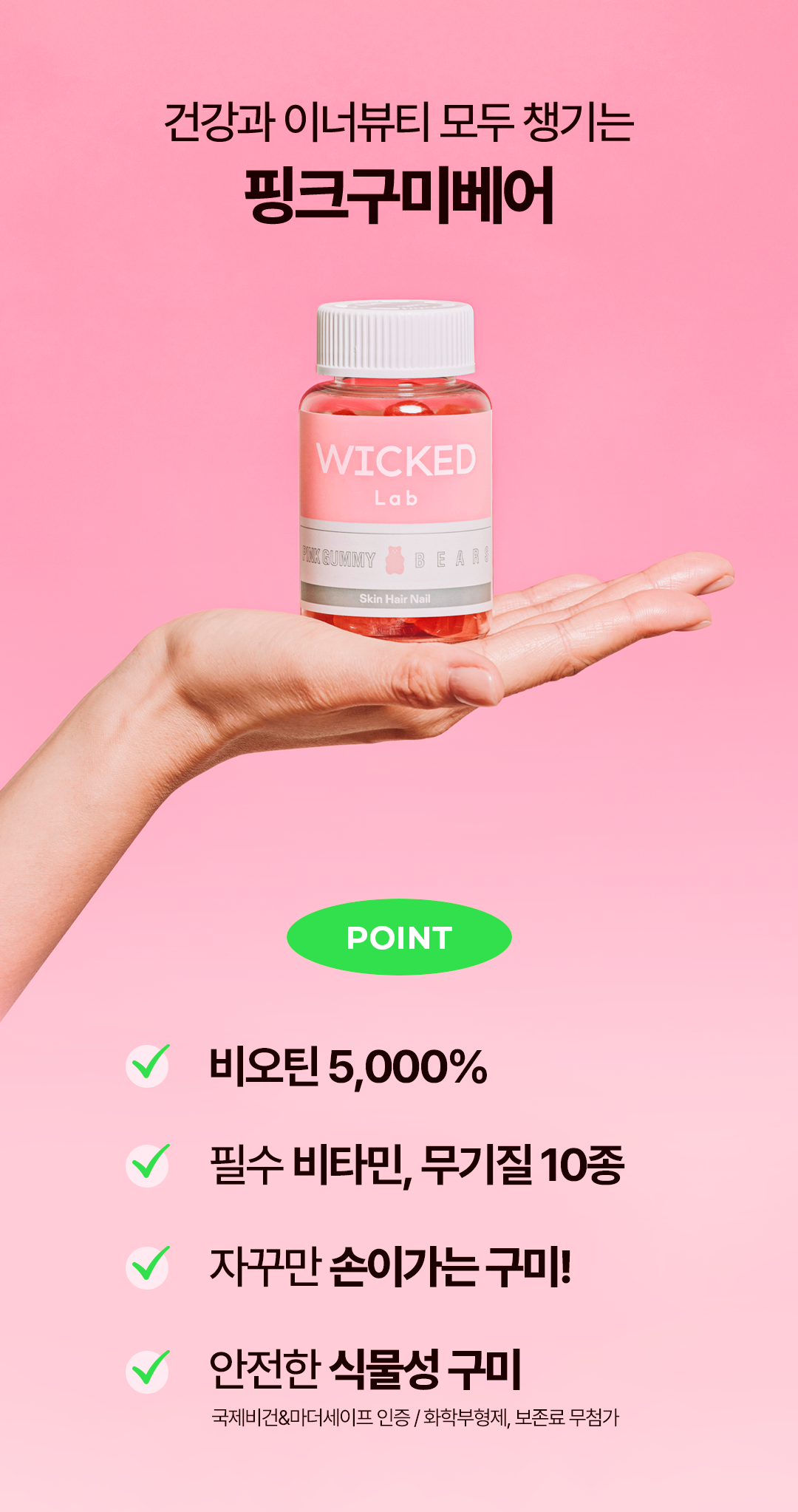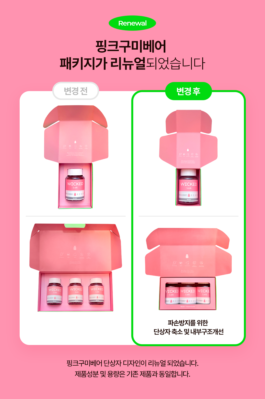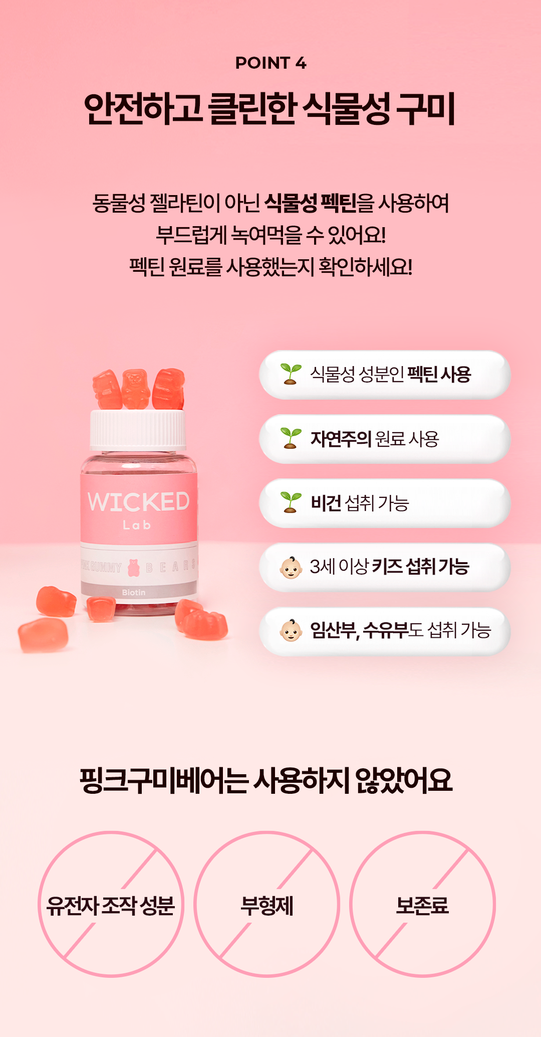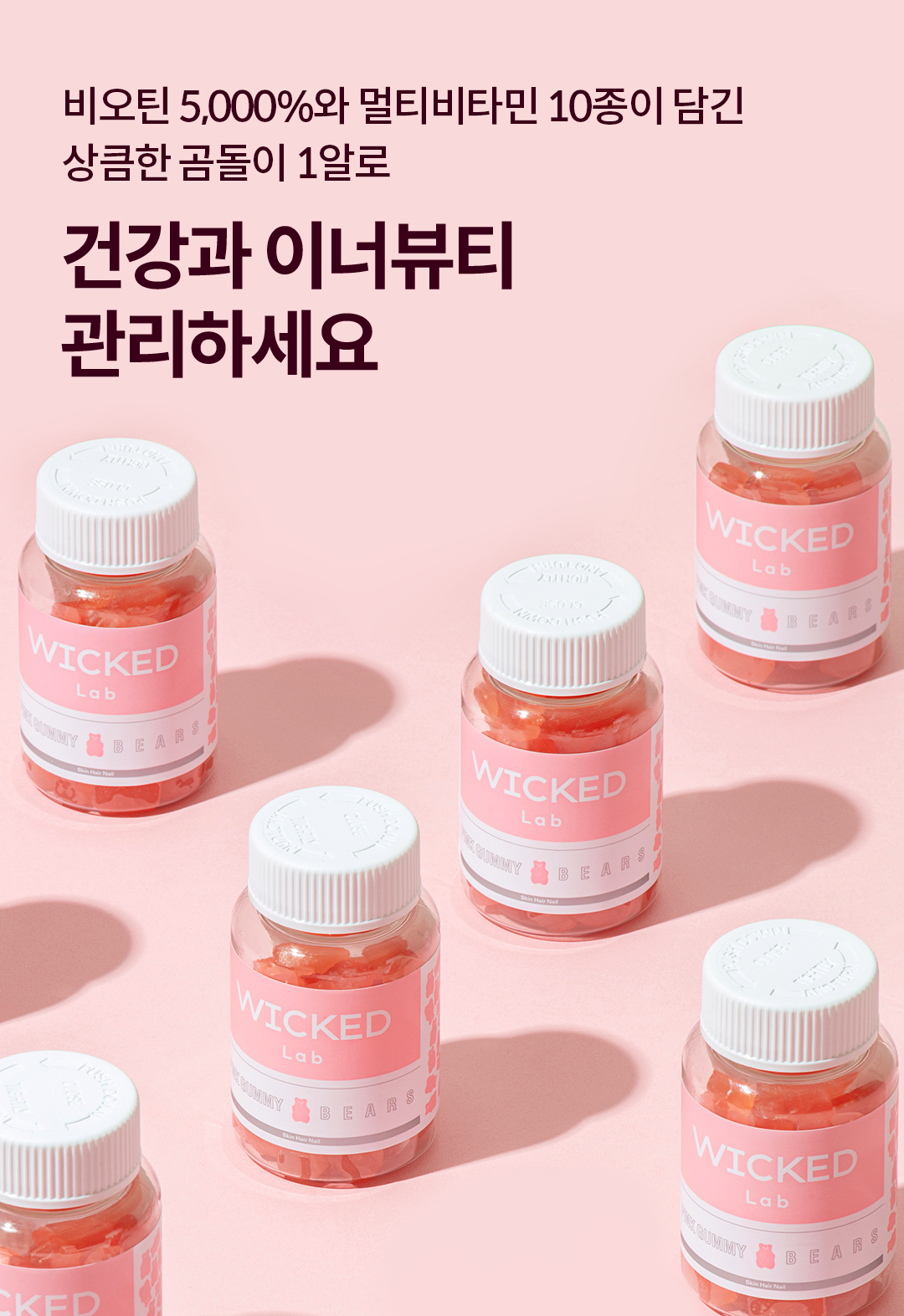 (위키드랩)핑크구미베어 3병 고함량 비오틴 멀티 비타민 식물성 비건 젤리(120구미)