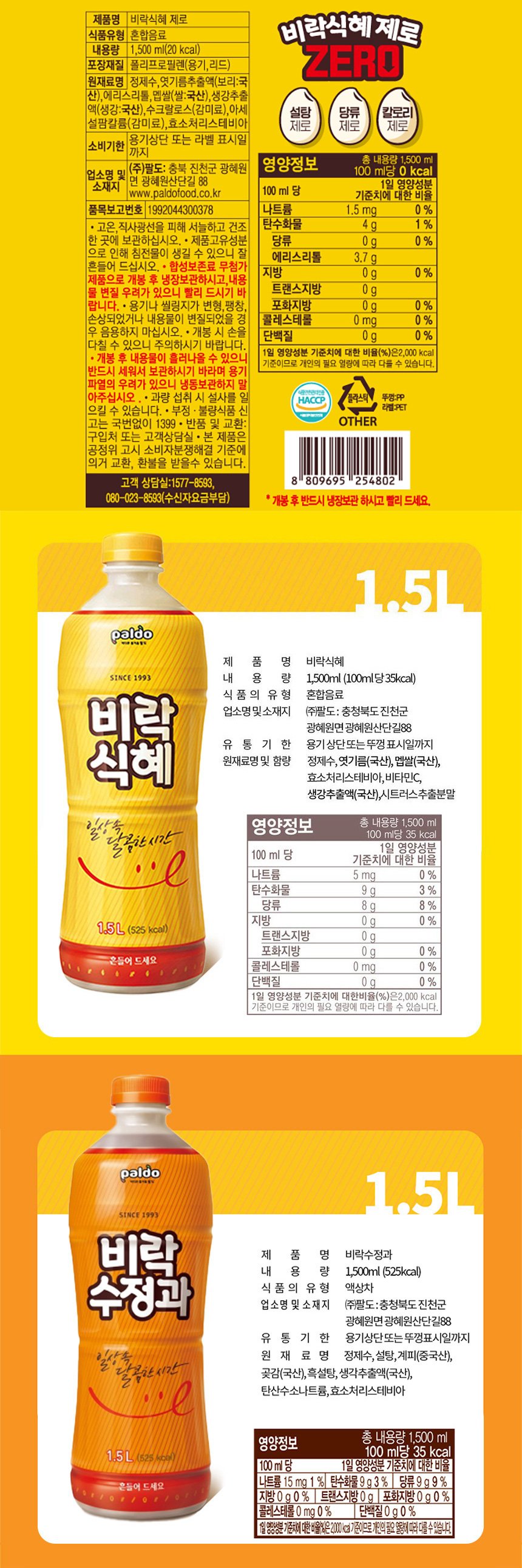 전통음료 1.5L PET 1+1+2 4개 골라담기 제로식혜 식혜 수정과