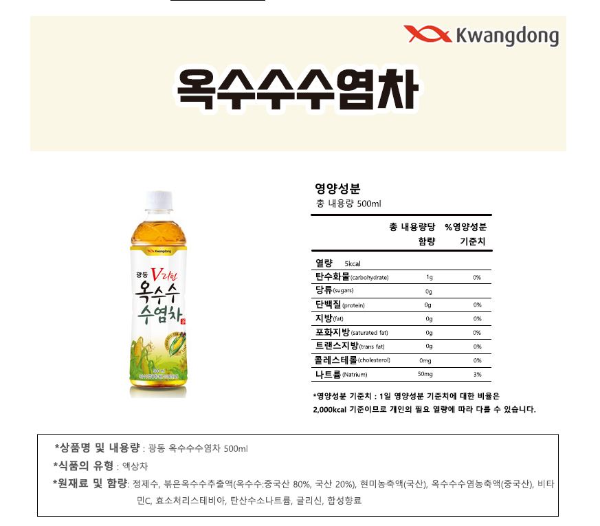 상품명 : 광동제약 옥수수수염차 500mlx20EA