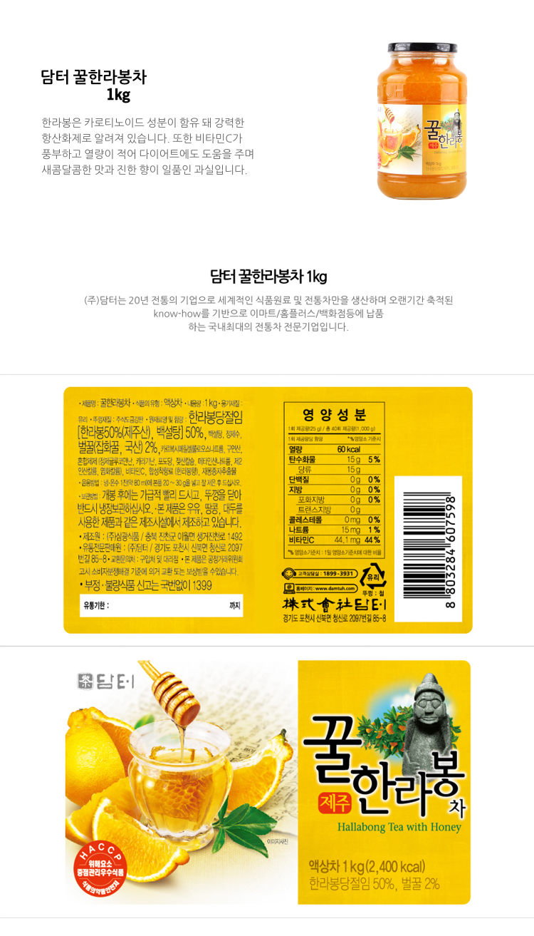 상품명 : 담터 제주 꿀한라봉차 1kg 액상차 접대용 전통차