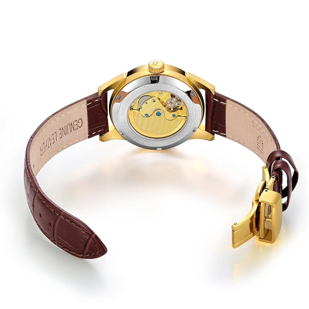 Skeletonized design on the back allows you to clearly see the gears of the movement inside, no batteries required.