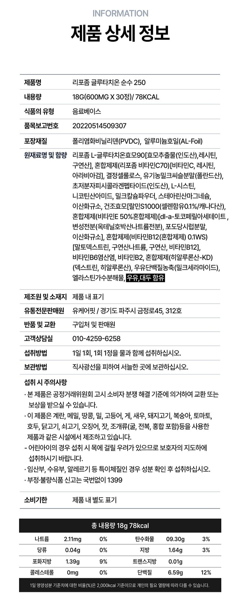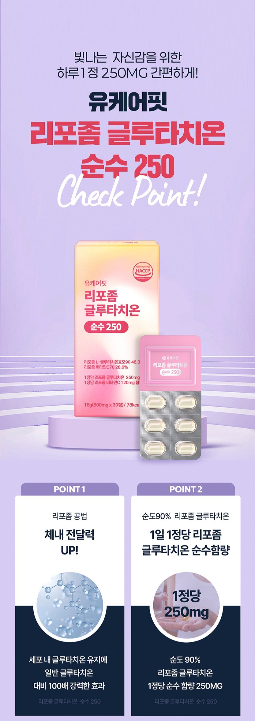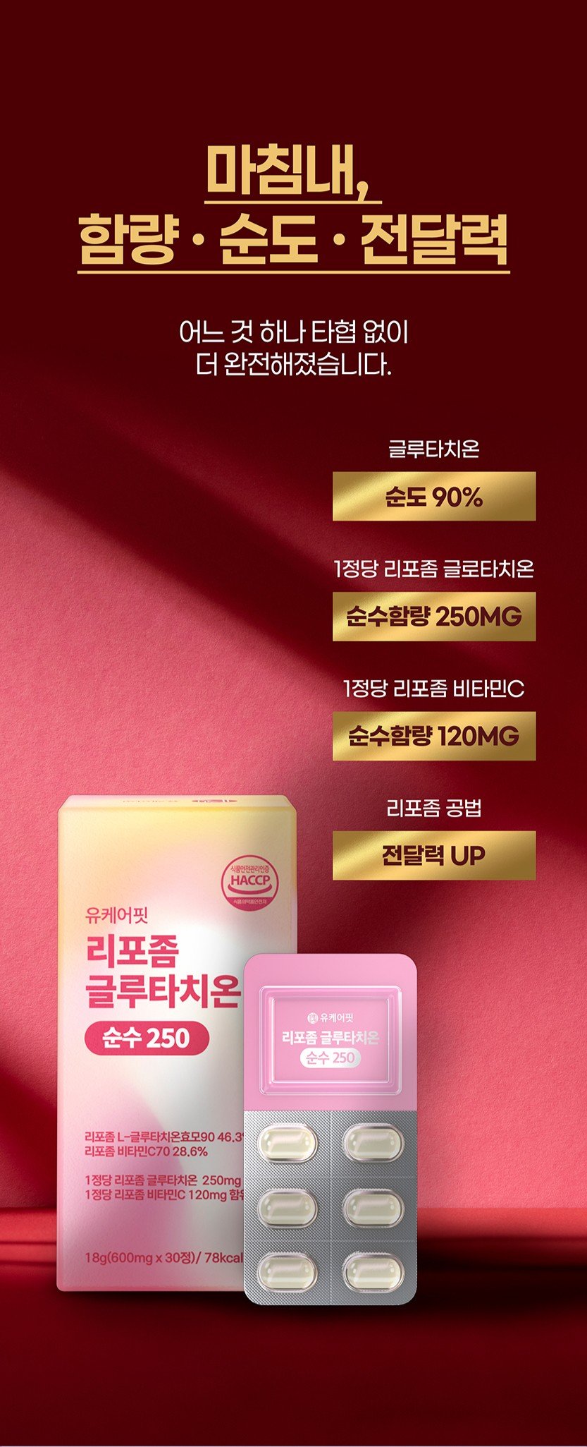 (유케어핏)리포좀 글루타치온 리포즘 글루타티온 순수 250mg 비타민C 30정 6개월분