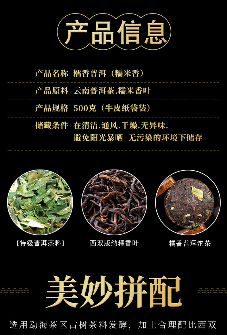 SDGVD신상품/황제의 추천운남성 1등급 찹쌀향 명품보이차 500g 나미향 골드보