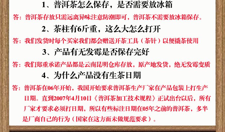 2006년 숙성 보얼차의 원료는 10년 이상 적당한 발효와 변형을 거쳐 2018년에 압축되어 운남 차 공장에 보관되었으며 제품 가격이 비교적 저렴하다.운남 날씨는 건조, 차 저장에 더 적합하다.기후가 독특하여 차의 변형도 더 좋고, 각 3000그램의 무게는 6포이다. 차를 끓이는 과정에서 물이 증발하기 때문에 무게가 줄어들 수 있는데 무게는 아마 2900g ---3000g 정도 되겠네요.