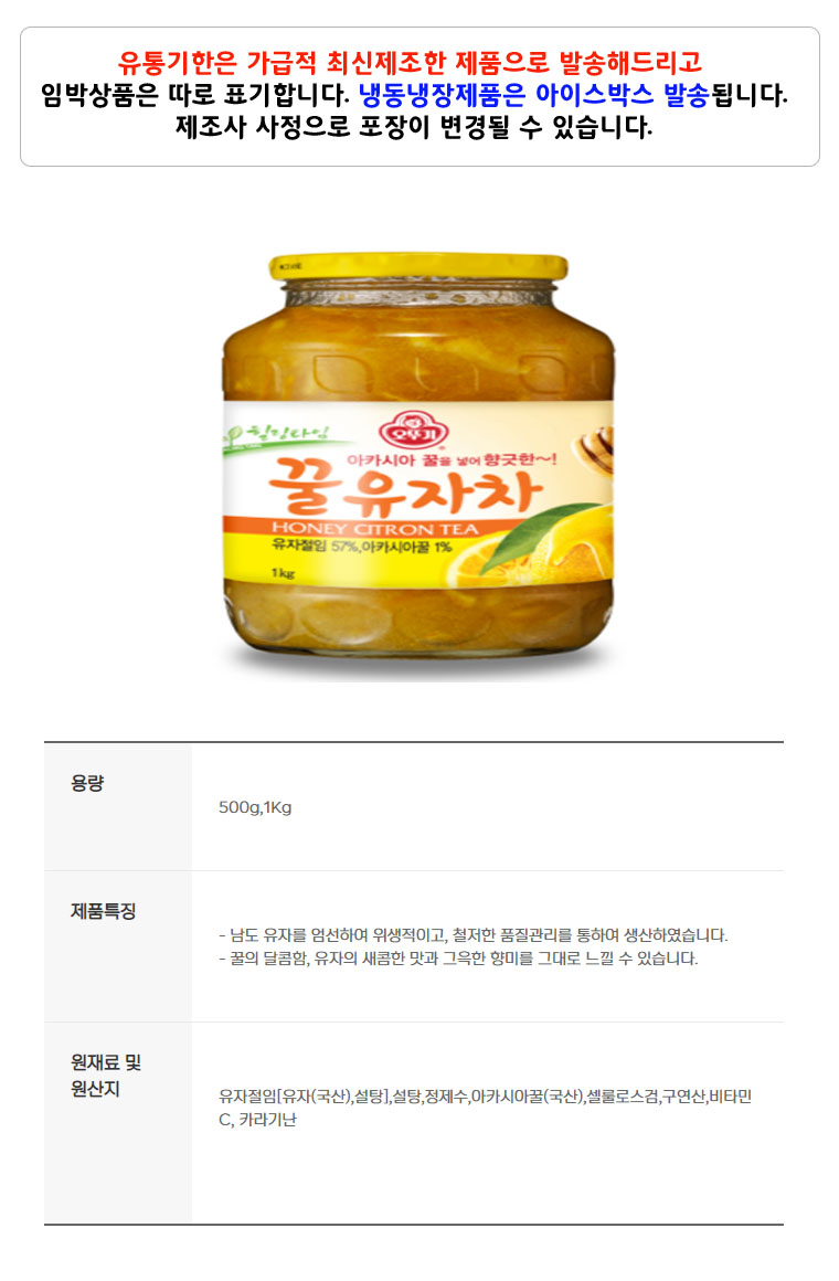 오뚜기 업소용 마시는 전통 건강 tea 잠잘오는 차 대용량 꿀유자차 1kg 1개입 1개