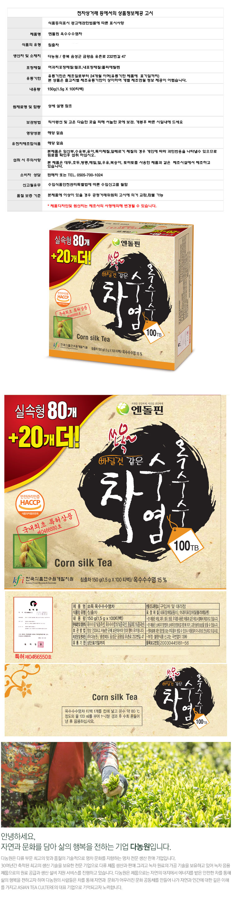 엔돌핀 마시는 전통 건강 tea 잠잘오는 업소용 차 옥수수수염차 1.5g 100개입 1개