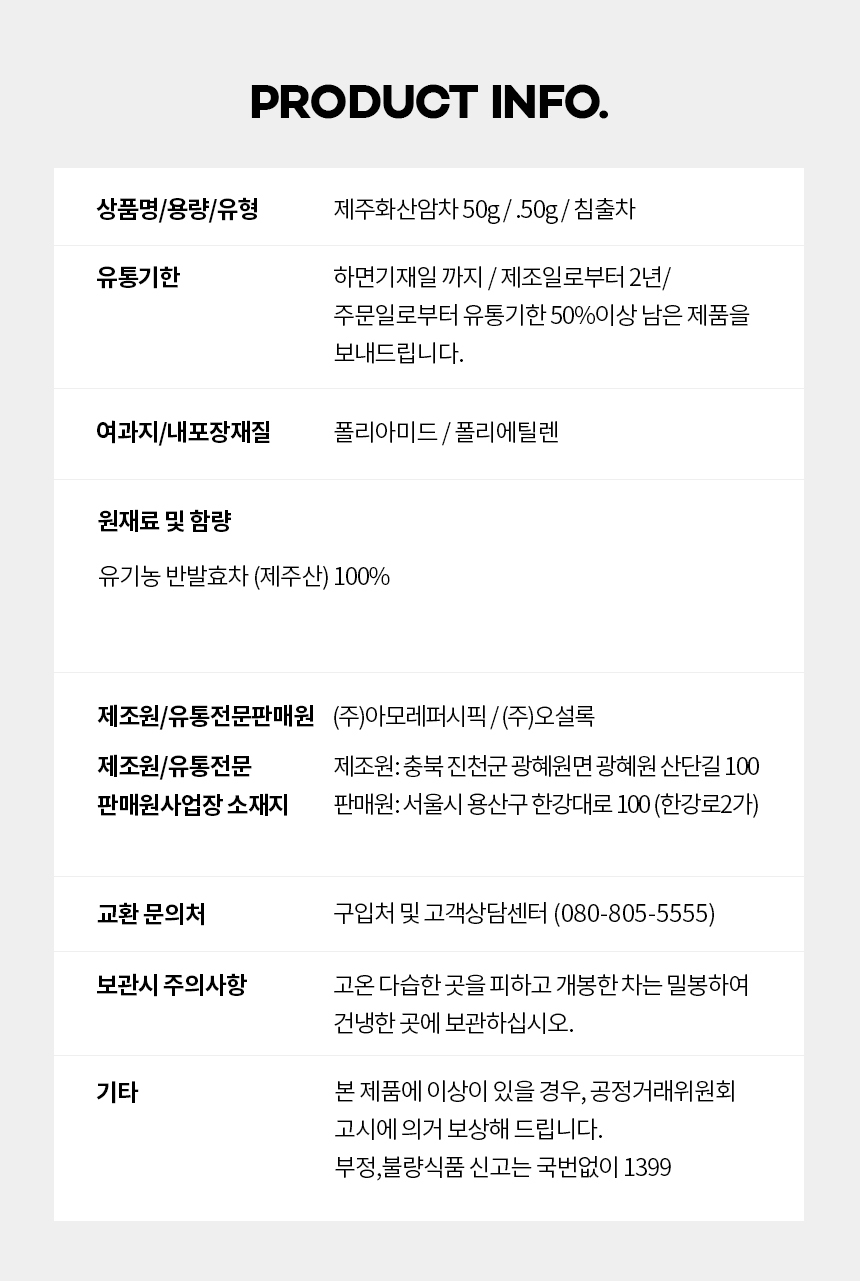 (롯데백화점)(오설록) 제주화산암차 50g(잎차)