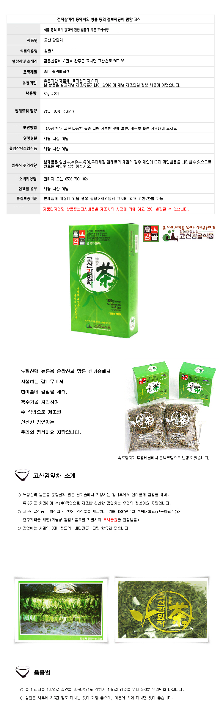 (고산감골식품) 고산감잎차(잎차형) 100g 증자법제조방식