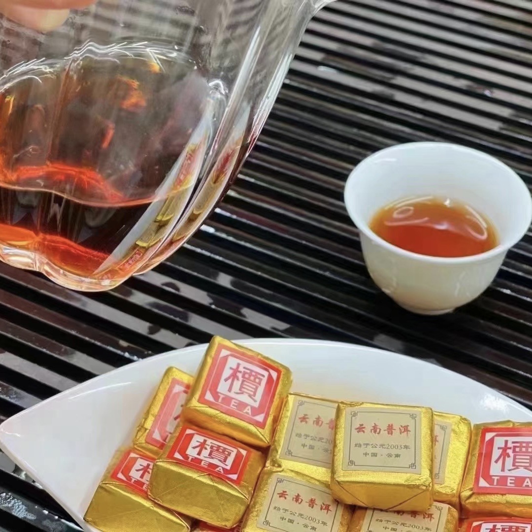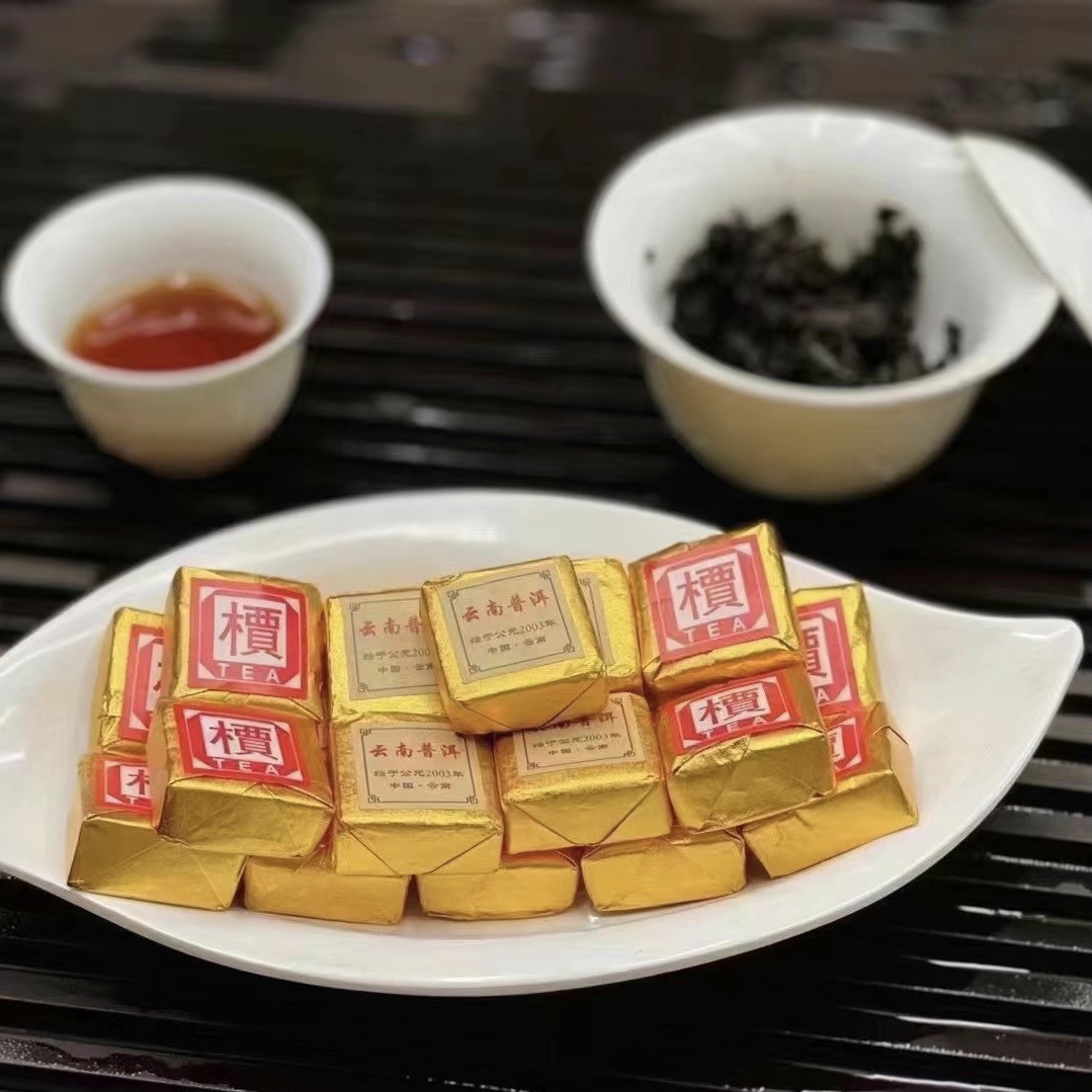 중국 운남성 찹쌀향 숙성 미니 보이차 티류으스 골드 브릭 3호