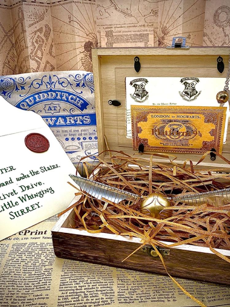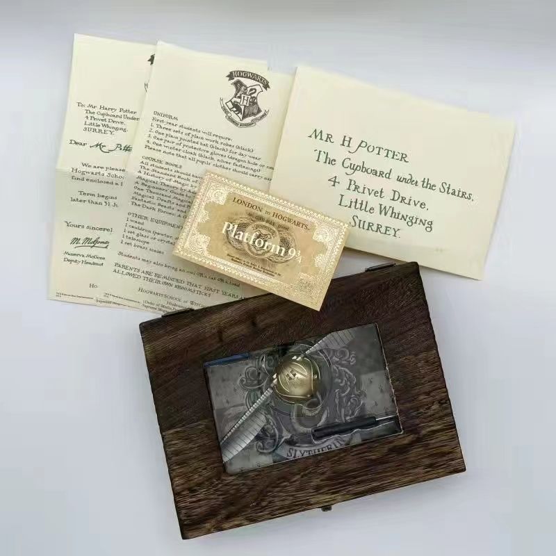 골든 스니치 나무 상자 + 입학허가서 + 티켓