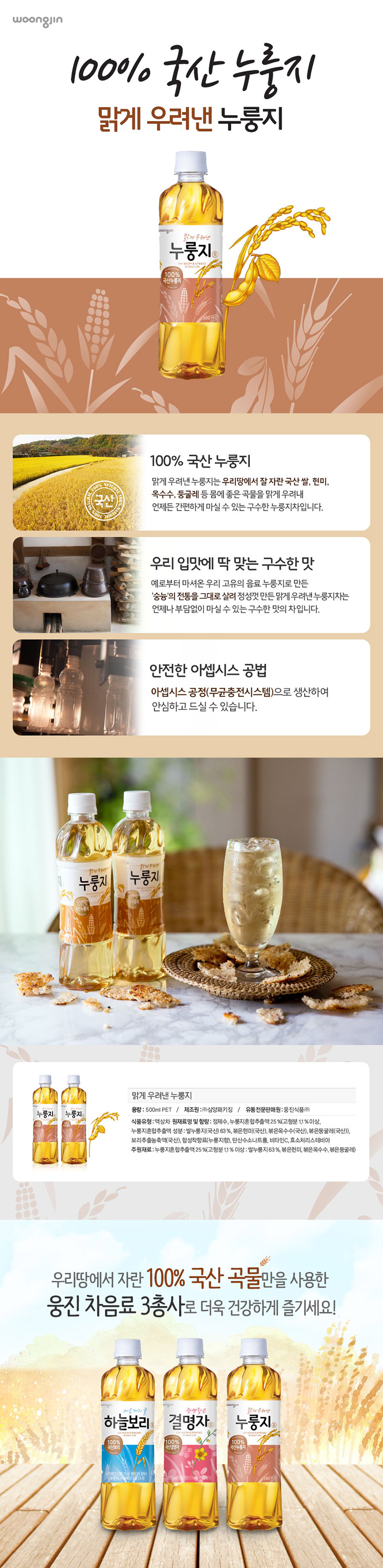 웅진 누룽지 음료 맑게 우려낸 건강 500ml 20펫