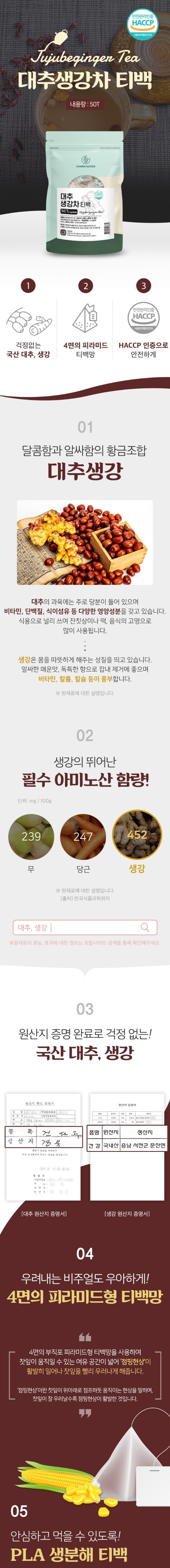 국산 대추 생강 차 삼각형 티백 망 50티백
