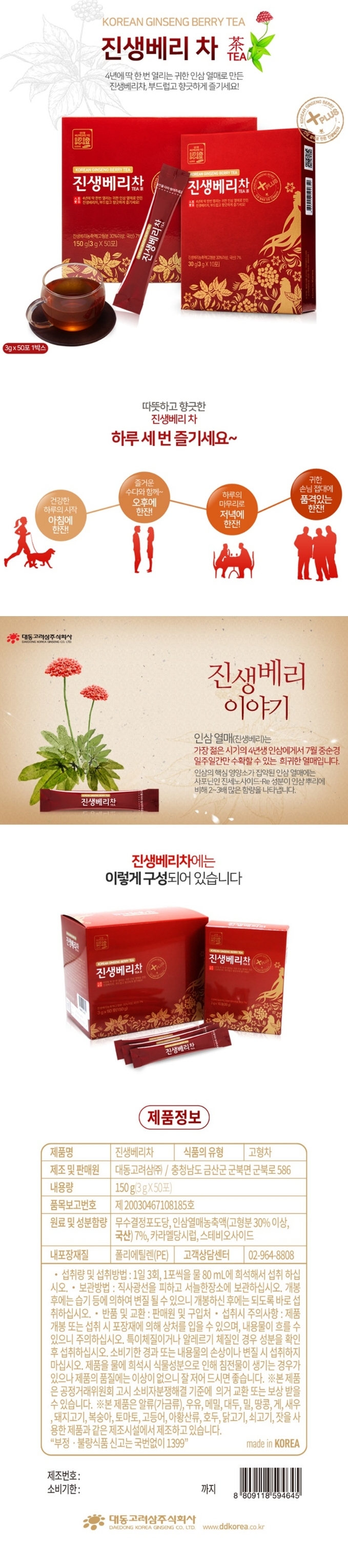 대동고려삼 국내산 진생 베리 차 액상 커피대용 선물용 50포