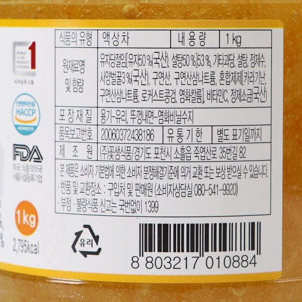 | 품명 및 모델명 | 꿀 유자차/1KG |