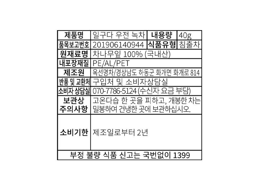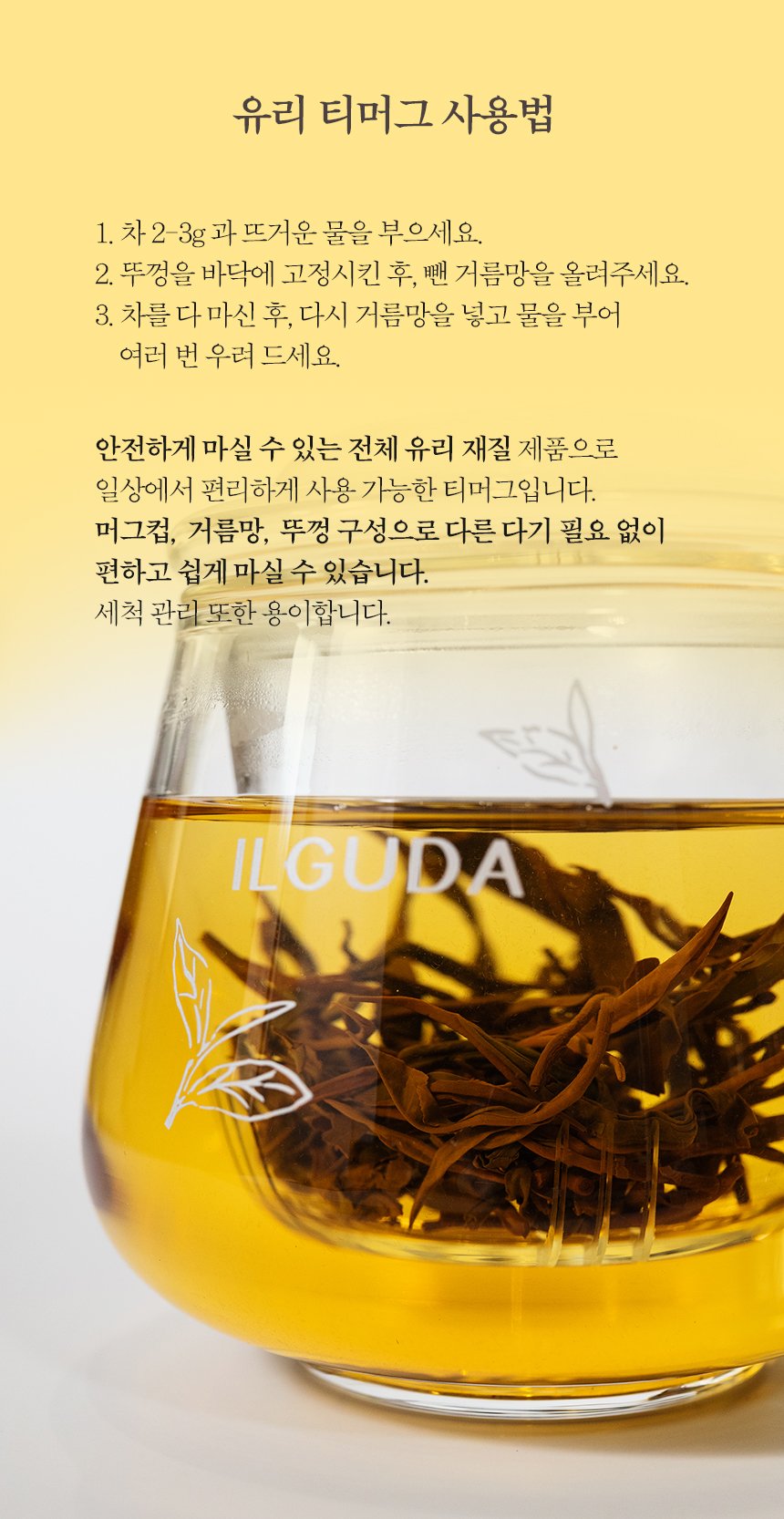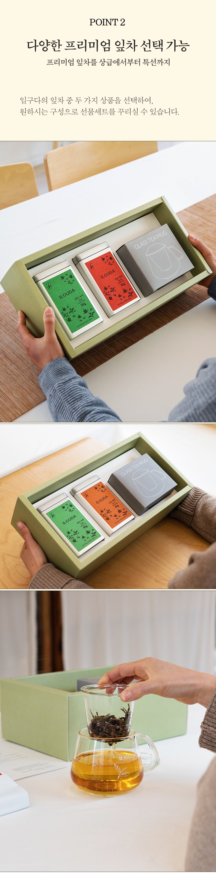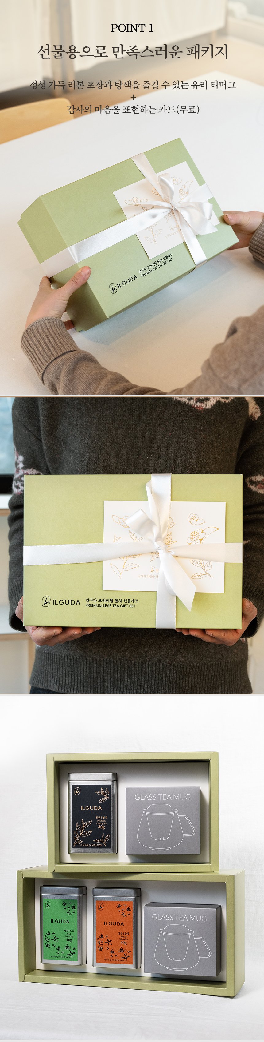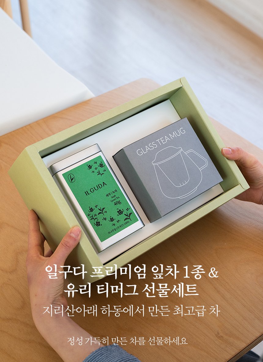 일구다 프리미엄 우전 녹차 선물세트 (구성:녹차40g+유리티머그1P+보자기)
