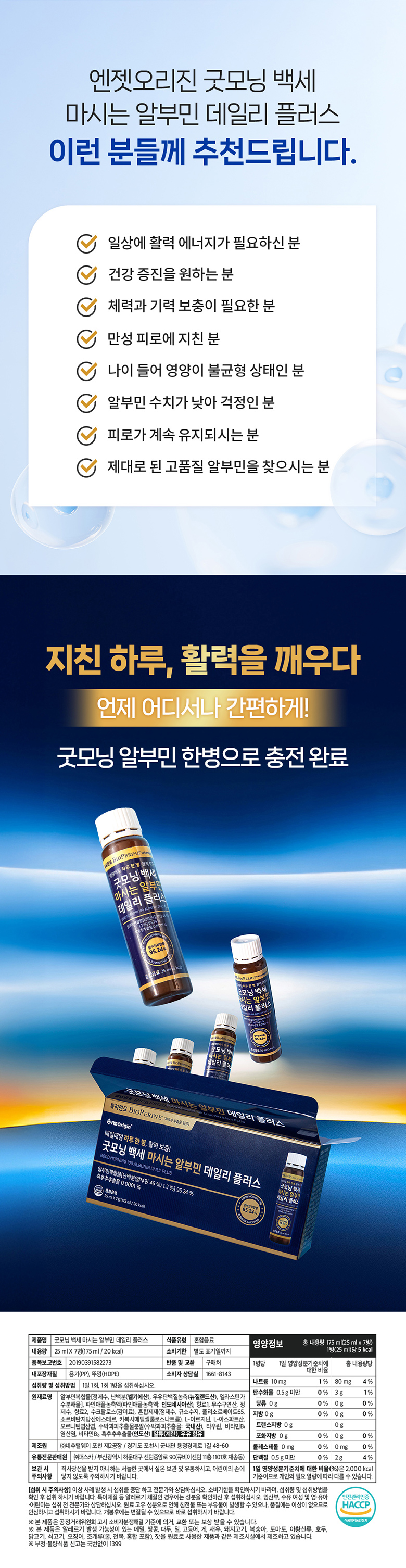 공식3+1 굿모닝 백세 마시는 알부민 데일리 플러스 7병 (총 28일분)