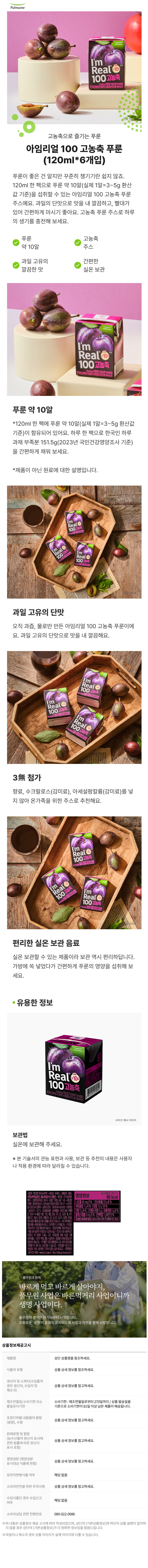 풀무원 아임리얼100 고농축 푸룬주스 48팩