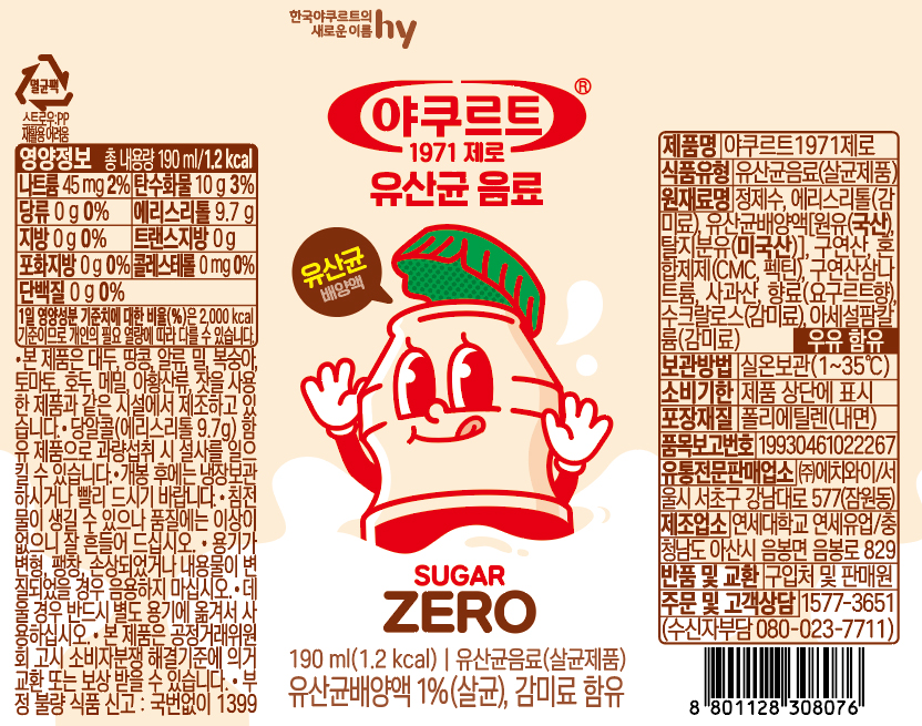 야쿠르트 1971 제로 요구르트 190ml 24개