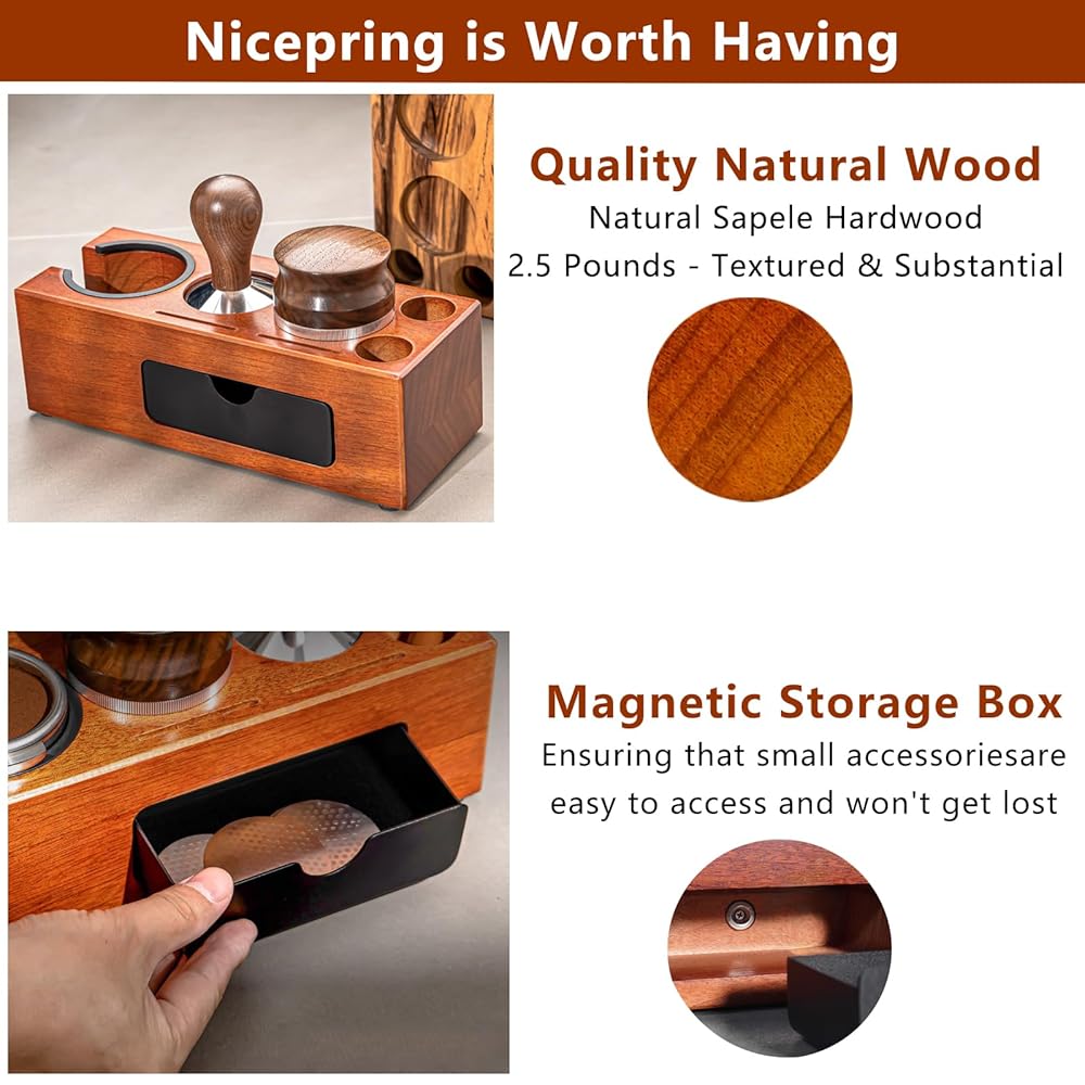 에스프레소 탐핑 스테이션 탐퍼 박스 8 in 1 에스프레소 노크 박스 및 탐프 스테이션 커피 정리함 51mm 53m