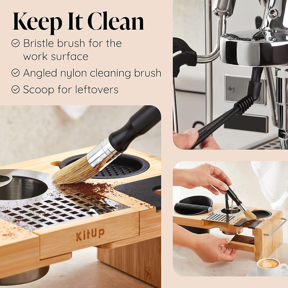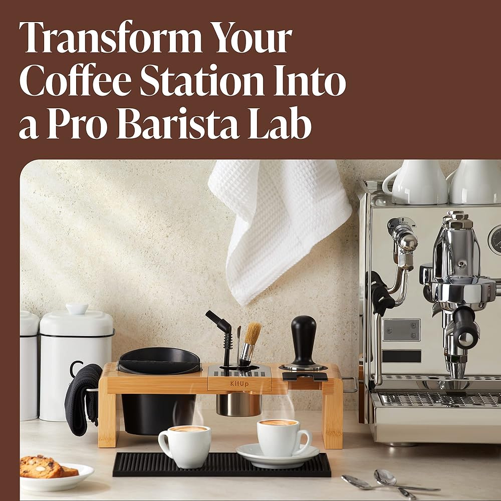 키트업 에스프레소 노크 박스 및 탐프 스테이션 - 탐프 스탠드 및 커피 탐퍼 홀더가 있는 탐핑 스테이션 -