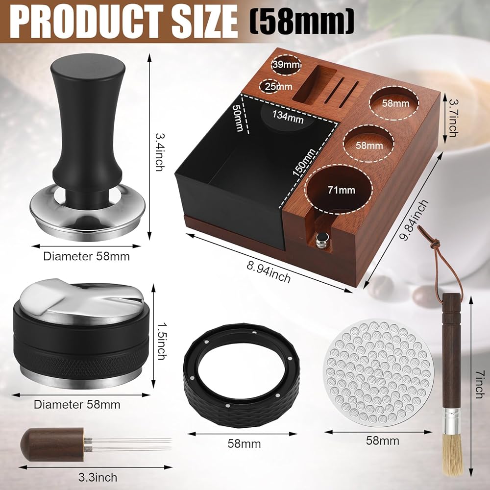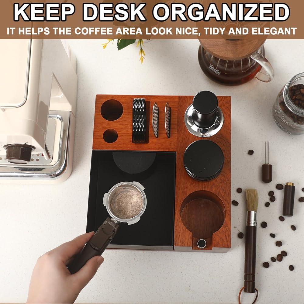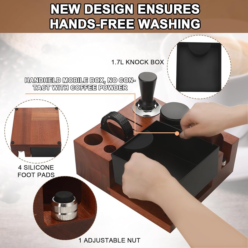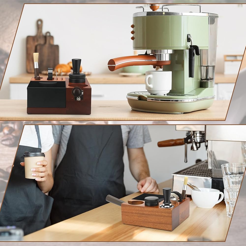 웬칙 8인치 58mm 에스프레소 노크 박스 에스프레소 액세서리 커피 정리함 나무 탐핑 스테이션 에스프레소