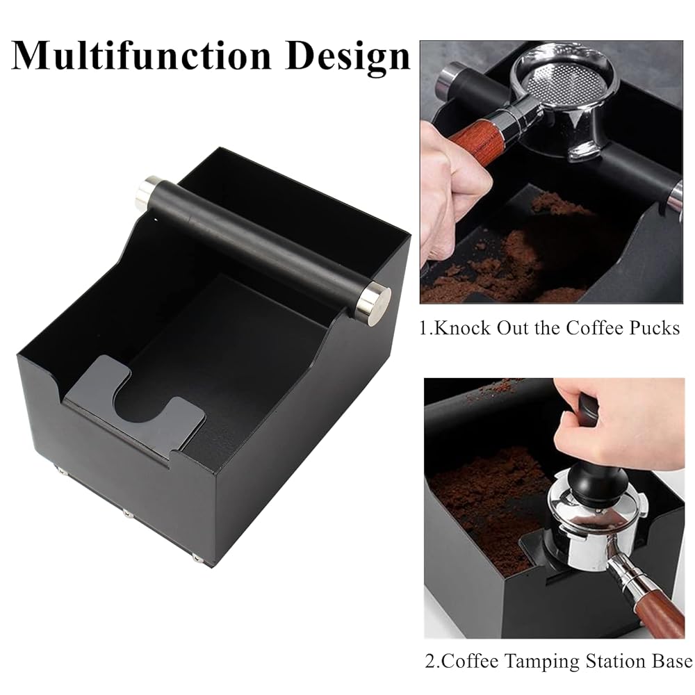커피 탬핑 스테이션 베이스가 있는 DIBTSA 에스프레소 노크 박스 포터 필터 스탠드가 있는 스테인리스