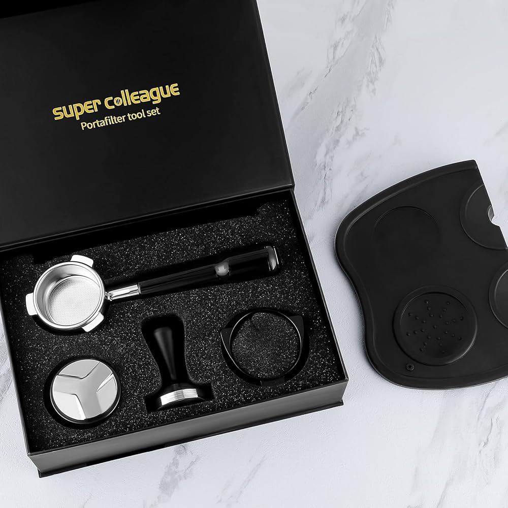 선물 상자 54mm 바닥 없는 휴대용 필터 2컵 바구니 필터 분배기 레벨러 핸즈프리 투약 링 깔때기 탐퍼 탐핑
